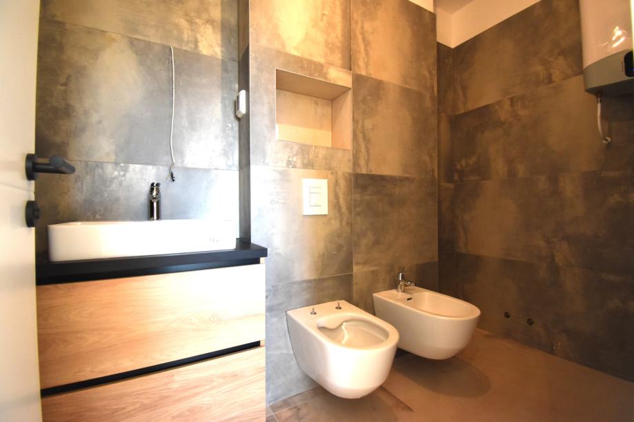 Ovaj prostrani stan, dobrog rasporeda proteže se na 100m2 te se sastoji od kuhinje s blagovaonicom i dnevnim boravkom koji ima izlaz na terasu, hodnika, 3 spavaće sobe, od kojih jedna ima kupaonicu te još dvije kupaonice.