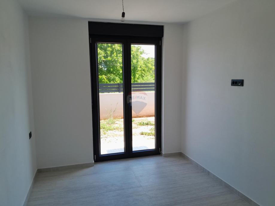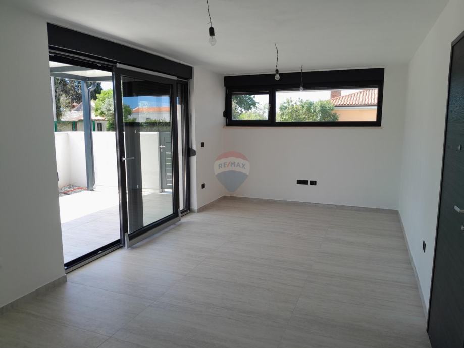 Sastoji se od predsoblja,dnevnog boravka sa kuhinjom i blagovaonicom,dvije spavaće sobe,kupatila i velikog vrta koji okružuje stan.