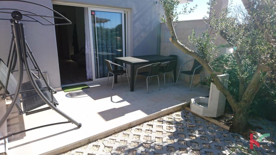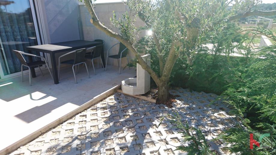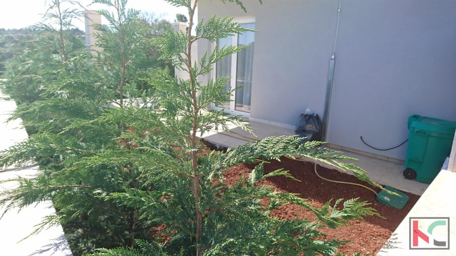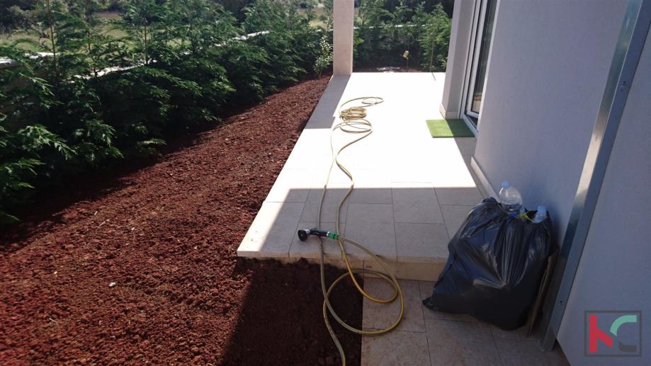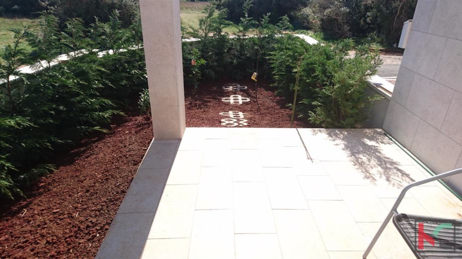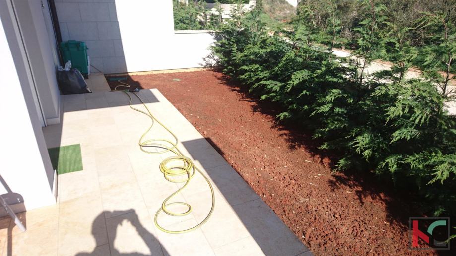 Ovaj moderni objekat ukupne površine 114.9m2 sa dodatnih 127.12m2 vrta, podjeljen je na dvije etaže od čega u prizemlju se nalazi prostrani dnevni boravak, kuhinja s blagovaonom ostava, kupatilo, velika terasa s izlazom na vrt, unutarnjim stubištem dolazi se na prvi kat gdje se nalaze tri spavaće sobe, velika terasa i kupatilo.