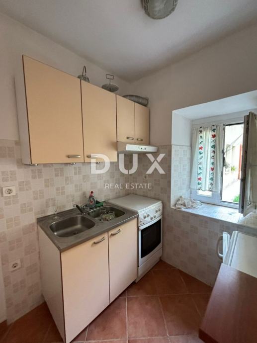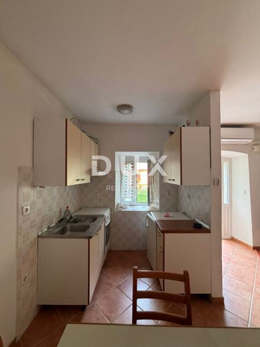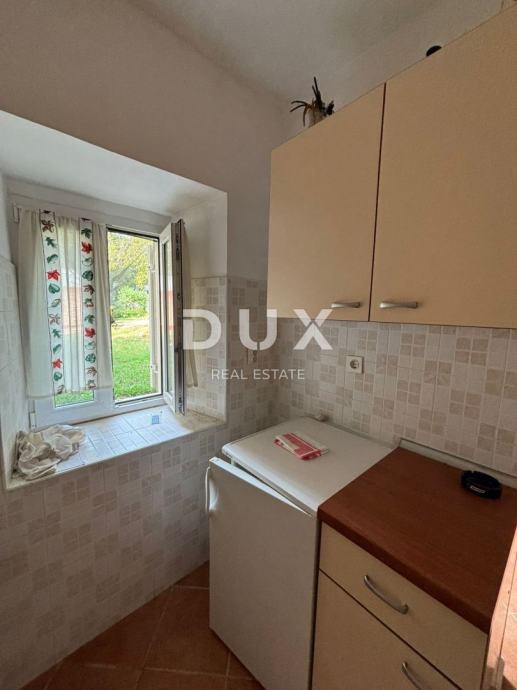 U prizemlju je smješten dnevni boravak s kuhinjom i kupaonica te je prizemlje povezano sa konobom od 34 m2 s visokim stropovima kojoj je potrebna potpuna adaptacija.