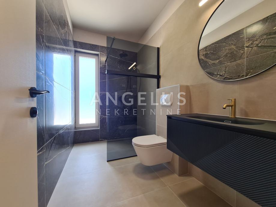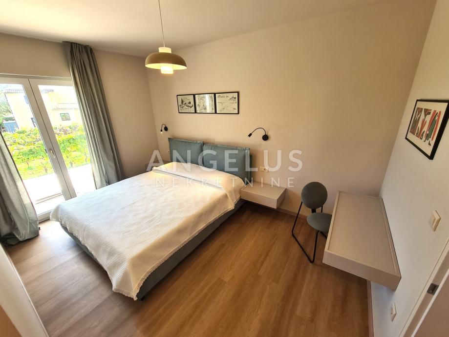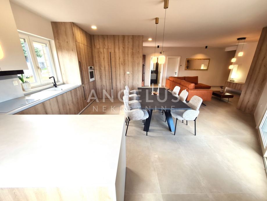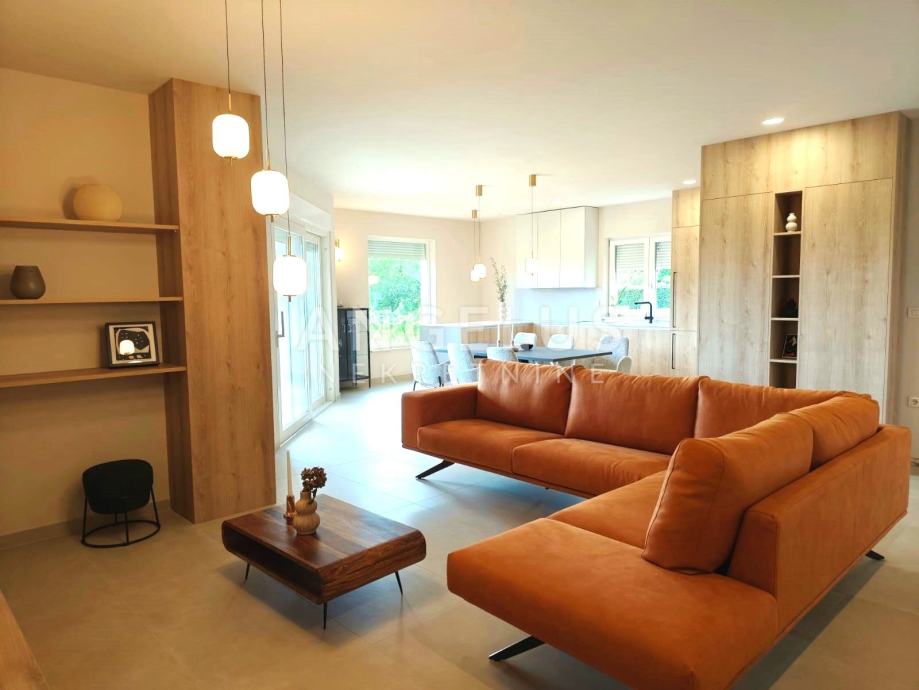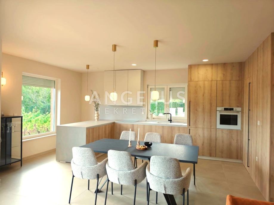 Unutrašnjost kuće opremljena je namještajem izrađenim po mjeri, a kvaliteta izrade i pažnja prema detaljima primjećuju se na svakom koraku. PVC stolarija s komarnicima i električnim roletama, električno podno grijanje i pet klima uređaja smještenih u svakoj sobi jamče optimalnu razinu komfora tijekom cijele godine. Uređena okućnica dodatno doprinosi osjećaju privatnosti, a budući da se briga o vrtu i bazenu prepušta najmodavcu, najmoprimci mogu uživati bezbrižno i bez dodatnih obaveza.
