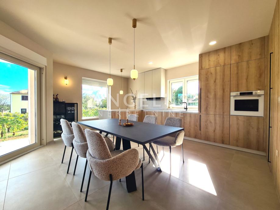 A modernly decorated single-storey house with a swimming pool is available for long-term rent, located in the vicinity of Barban. The location itself is one of its greatest assets - it is only a twenty-minute drive from Pula airport and only a few minutes from the key roads connecting the whole of Istria. The house offers complete peace and privacy, but without sacrificing accessibility and practicality. The house is completely new, newly built, and has never been moved in.