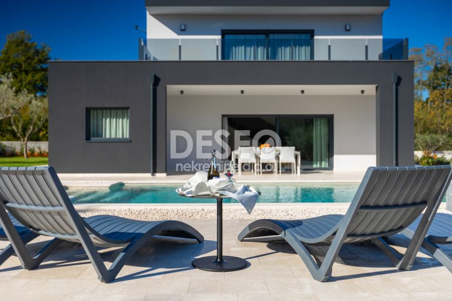 Deseo nekretnine nudi visokokvalitetnu vilu veličine 180 m2 koja se nalazi u mirnom mjestu Barban, na okućnici od 1000 m2.