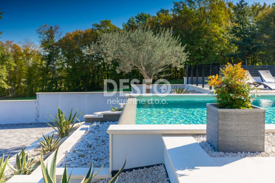 Na uređenoj okućnici se nalazi bazen veličine 35 m2, ljetna kuhinja i masline.
