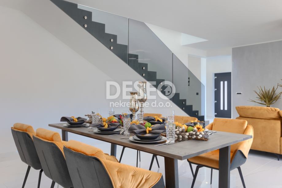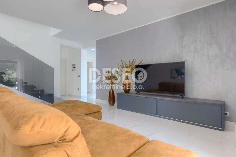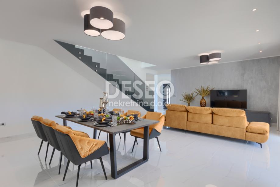 Čini ju prizemlje na kojem se nalazi predsoblje, dnevni boravak, blagovaona, kuhinja, jedna spavaća soba s kupaonom, toalet i terasa, a na katu se nalaze još dvije prostrane spavaće sobe s kupaonom i terasom.