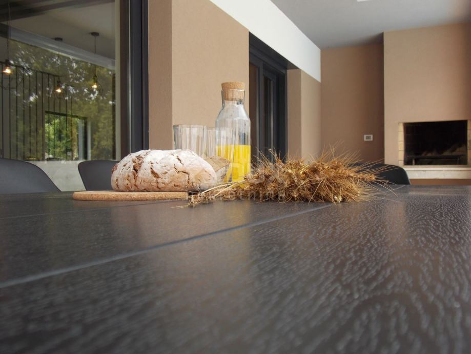Svaka je prostorija opremljena klima uređajem te kaminom na kruta goriva u dnevnom boravku. Vanjska stolarija je PVC s automatskim podizačima aluminijskih roletni. Na podovima je kvalitetna keramika te laminat u spavaćim sobama.
