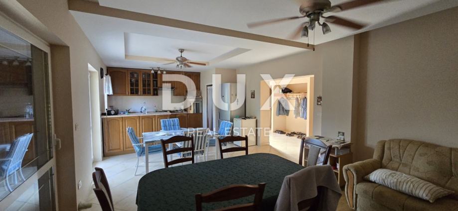 Gornja etaža, u potpunosti uređena i odmah useljiva, odiše svjetlošću i prozračnošću, s otvorenim konceptom kuhinje, blagovaonice i dnevnog boravka, koji zajedno čine topao i funkcionalan središnji prostor doma.