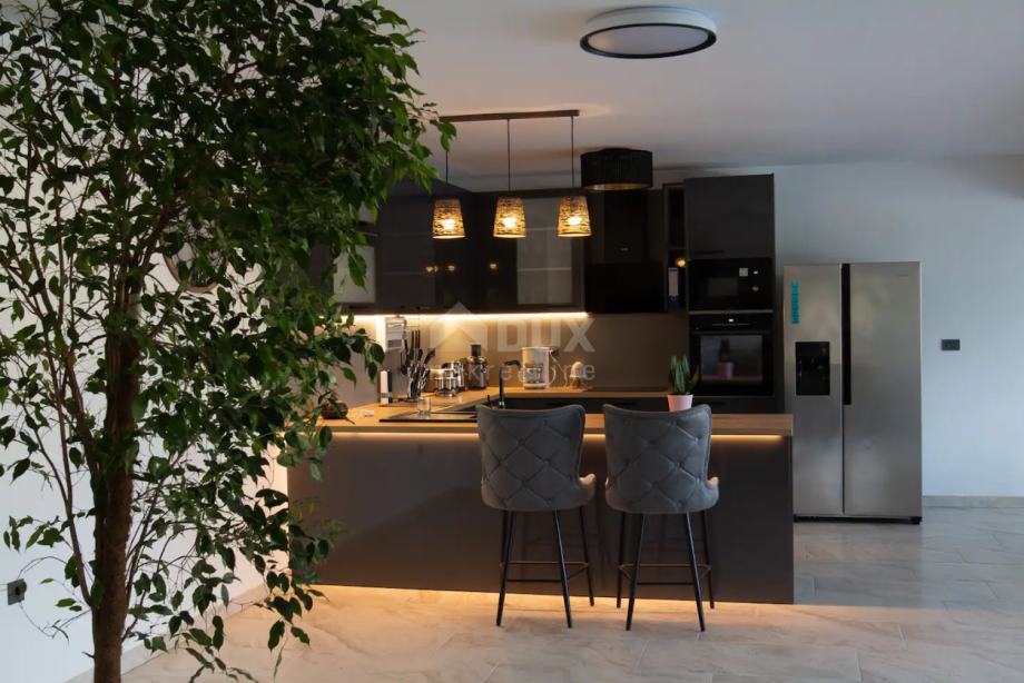 Vila je u potpunosti klimatizirana a postavljeno je i podno grijanje na struju u dnevnom boravku, blagovaonici i kuhinji. Također, postavljani su solarni paneli za toplu vodu. Vanjski dio uređen je i lijepo održavan. Osiguran je prostrani parking, lijepe zelene površine sa zasađenim ukrasnim biljem i voćkama, košarkaško igralište te prekrasni grijani bazen veličine 38 m2 sa uređenim sunčalištem.
