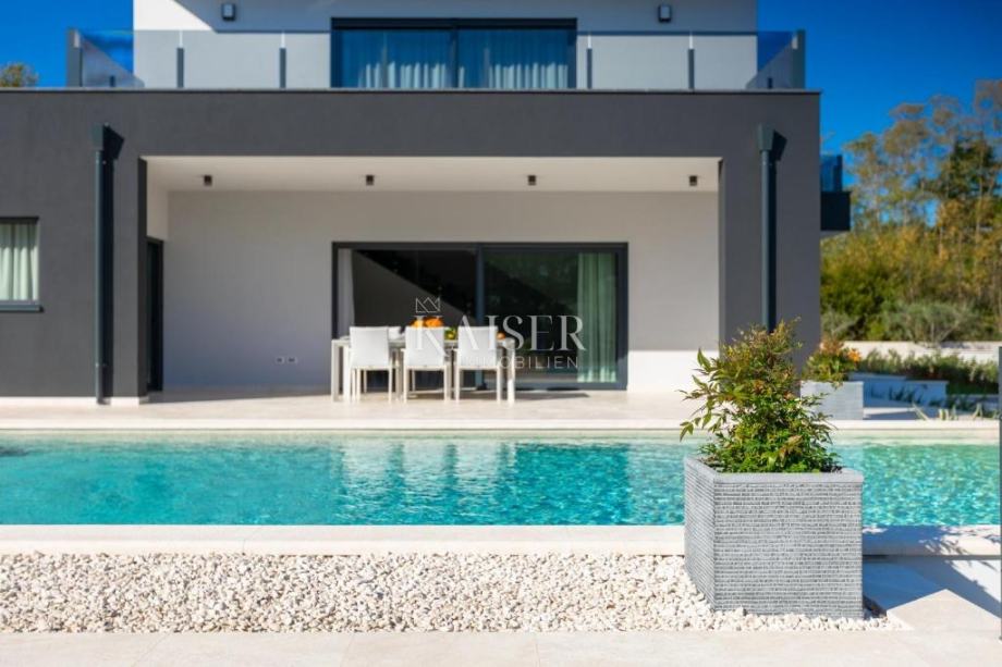 Pruža prelijevni bazen ukupne kvadrature 35 m2 kraj kojega se nalazi ljetna kuhinja.