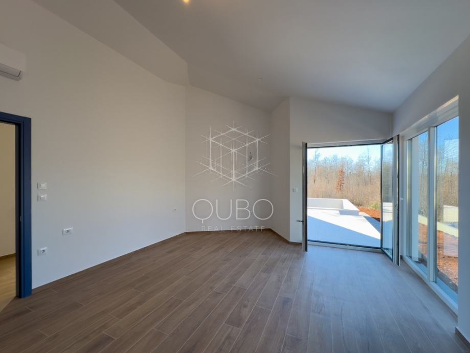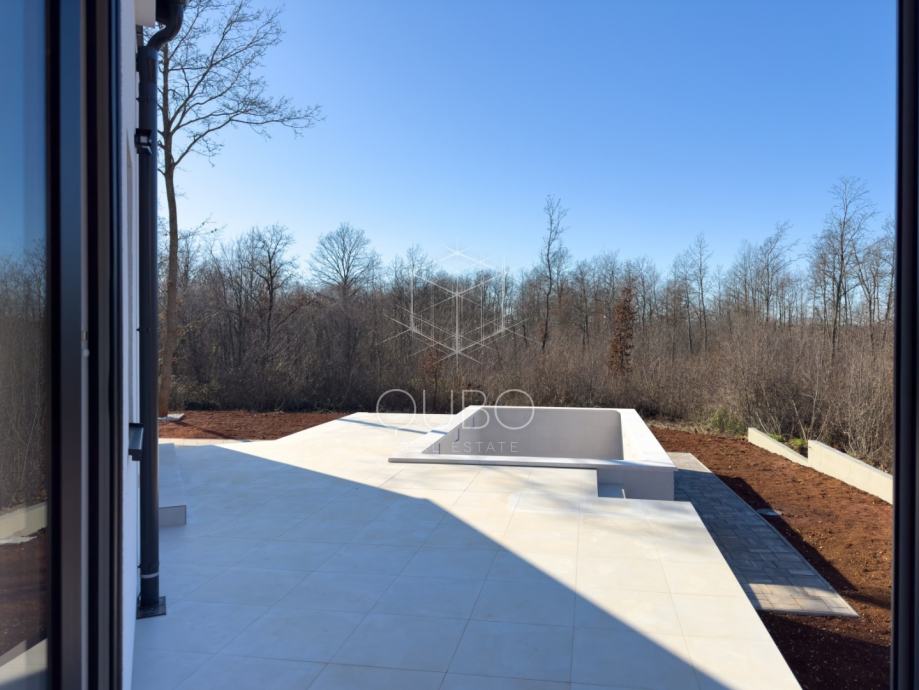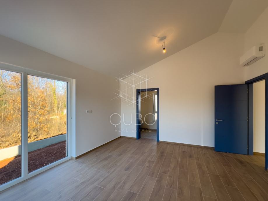 U malom istarskom mjestu Kožljani, tik do šume i svega 15 minuta od mora, smještena je ova potpuno nova samostojeća kuća – spoj suvremene tehnologije, energetske učinkovitosti i potpune privatnosti.