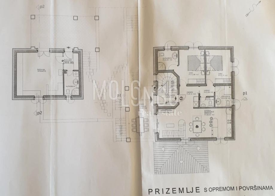 Glavna kuća (P+2) – u roh bau fazi, s odvojenim ulazima za svaku etažu. Predviđena su tri odvojena stana svaki po cca 75m2, što pruža odličnu priliku za višestambeno korištenje ili daljnju turističku djelatnost.
