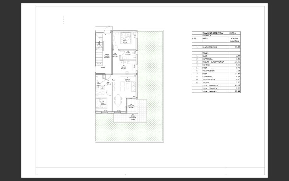 Istra, Barban, dvosoban stan zatvorene površine 65.74m2 u prizemlju dvojne zgrade.Stan A1 sastoji se od ulaznog djela, otvorenog koncepta kuhinje, dnevnog boravka i blagovaonice, dvije spavaće sobe, dvije kupaonice te natkrivene i nenatkrivene terase.Stanovi u prizemlju imaju priključeni vrt...Za ovu nekretninu kontaktirajte agenticu na broj telefona +385 91 612 0866.Više na Eurovilla.hr, ID: 529161Direktan link: https://eurovilla.hr/nekretnina/istra-barban-stan-nkp-73m2-u-prizemlju-s-dvije-spavace-sobe-novogradnja/529161/-----Istria, Barban, two-bedroom apartment with a closed area of 65.74 m² on the ground floor of a semi-detached building.Apartment A1 consists of an entrance area, an open-concept kitchen, living room, and dining area, two bedrooms, two bathrooms, and a covered and uncovered terrace.Ground floor... For this property contact our agent on telephone number +385 91 612 0866.More on Eurovilla.hr, ID: 529161Direct link: https://eurovilla.hr/en/property/istra-barban-ground-floor-two-bedroom-apartment-nkp-73m2-new-built/529161/...