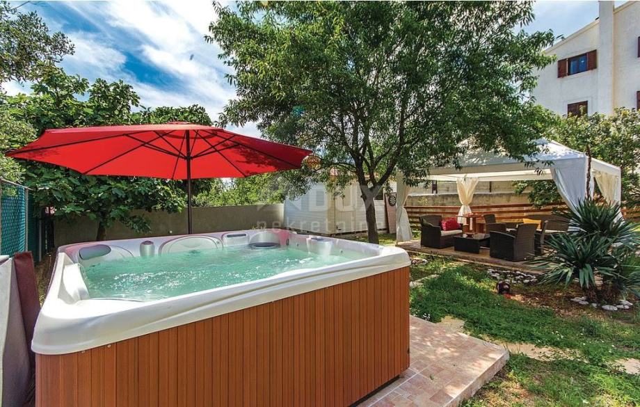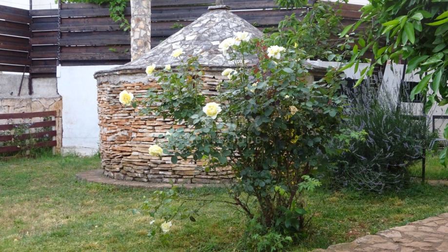 Okućnica od svojih 1300m2 u potpunosti je ograđeno i privatno. Uz parking za više od 6 automobila smjestilo se i brojnog drugog zanimljivog sadržaja, kao naprimjer natkrivene terase s biljarom, pikadom, Jacuzzi, natkrivena manja terasa idealna za ljetne večeri, kažun koji se koristi kao ljetna kuhinja.