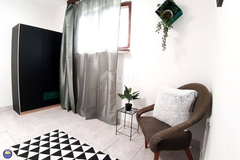 * Drugi apartman od svojih 25 m2 stambenoga prostora sastoji se od jedne spavaće sobe, kuhinje i WC-a koji trenutno prolazi kroz fazu renovacije. A poseban dio ovoga apartmana što mu pripada i dio okućnice od 350m2 s roštiljem i manjom vanjskom terasom.