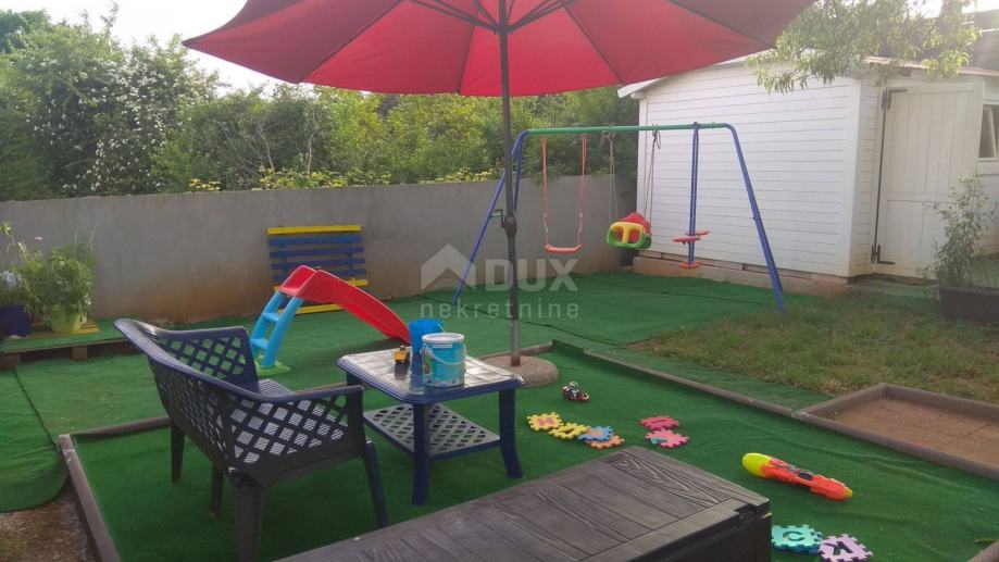 Uz to na okućnici se nalaze i dva montažna objekta koji koriste kao manja spremišta za bicikle i opremu za održavanja okućnice. Naravno i za najmlađe park za djecu s klackalicama, trampolinom i toboganom.