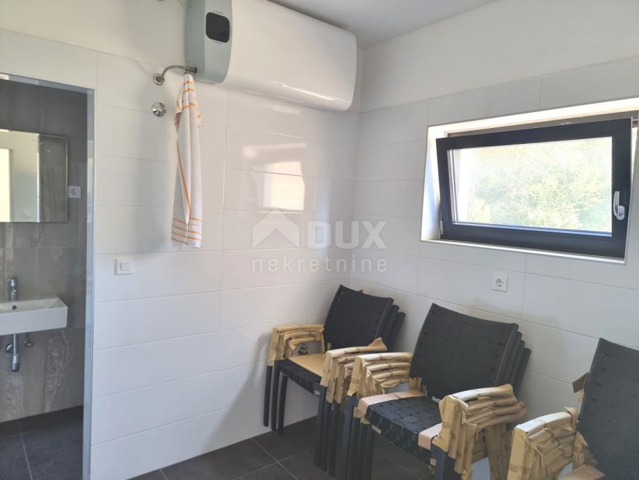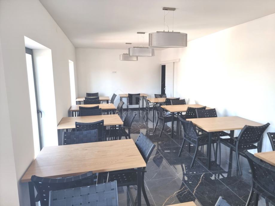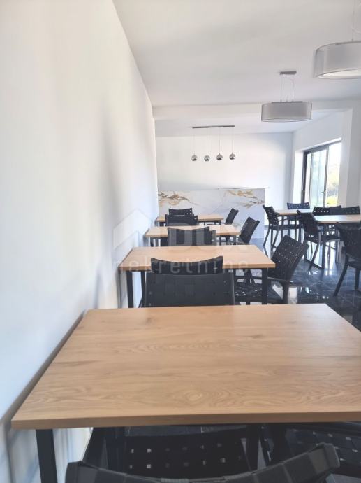 Samo 500 metara od mora!! Restoran ima 91 m2. Tri terase, dvije kuhinje, dva sanitarna čvora (za radnike i za goste), ljetnu kuhinju s roštiljem. Terase s pogledom na more imaju ukupno 280 m2. Dvorište s preko 15 parkirnih mjesta.