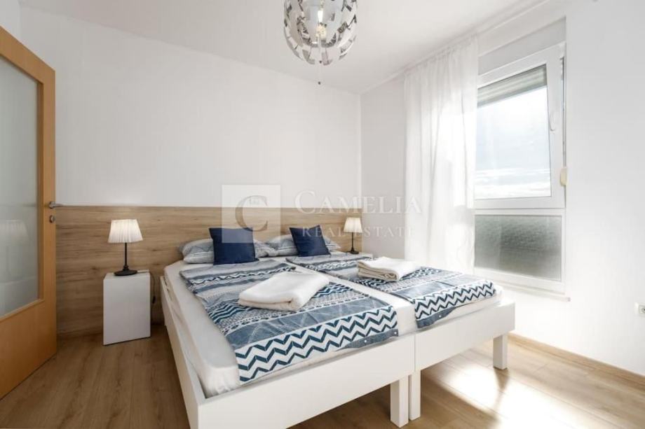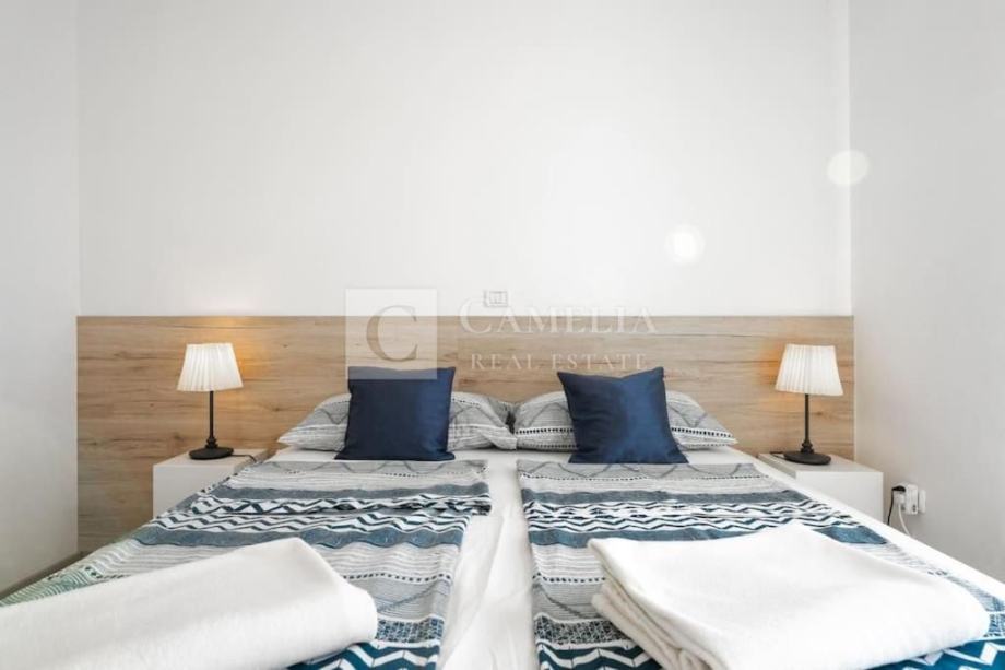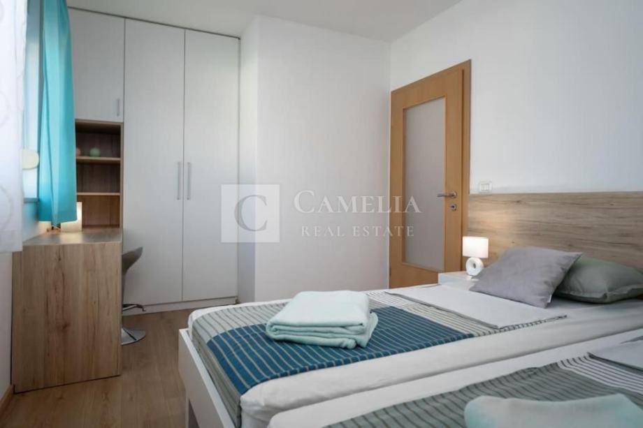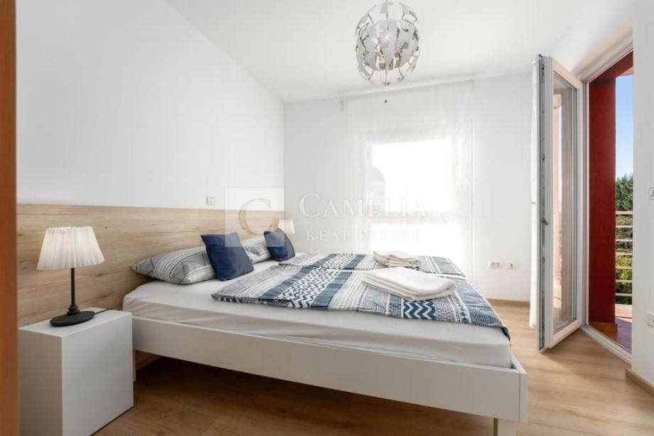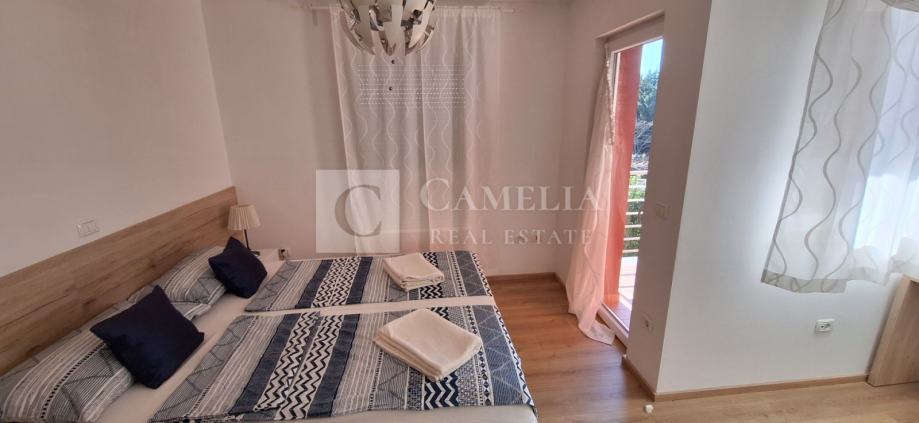 Na prvom katu se nalaze 2 spavaće sobe opremljene velikim bračnim krevetima i kupaonica sa wc-om, sušilom za kosu, tuš kadom, klasičnom kadom i umivaonikom.