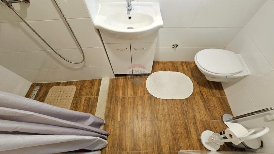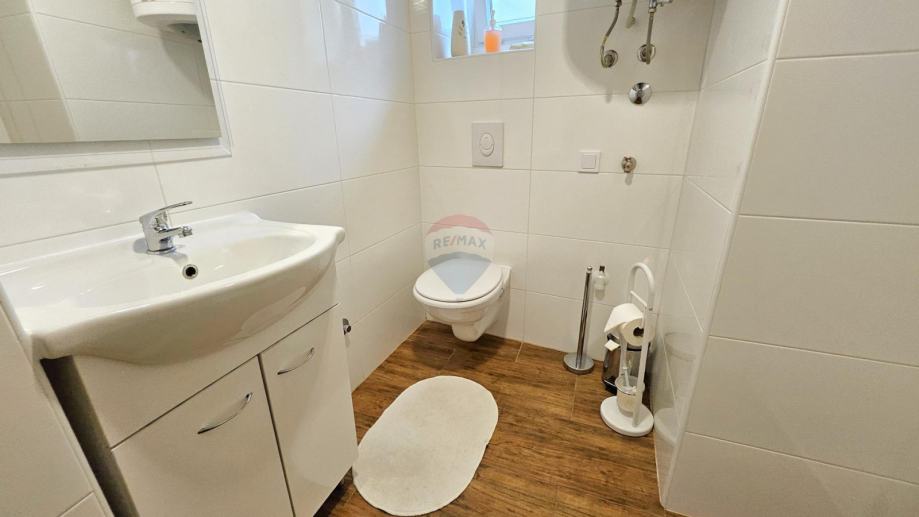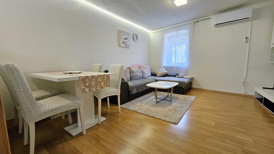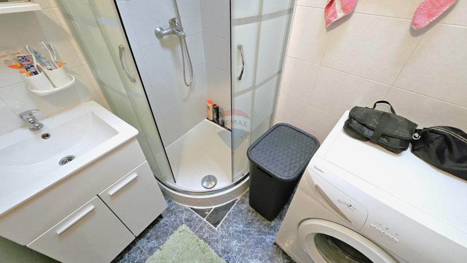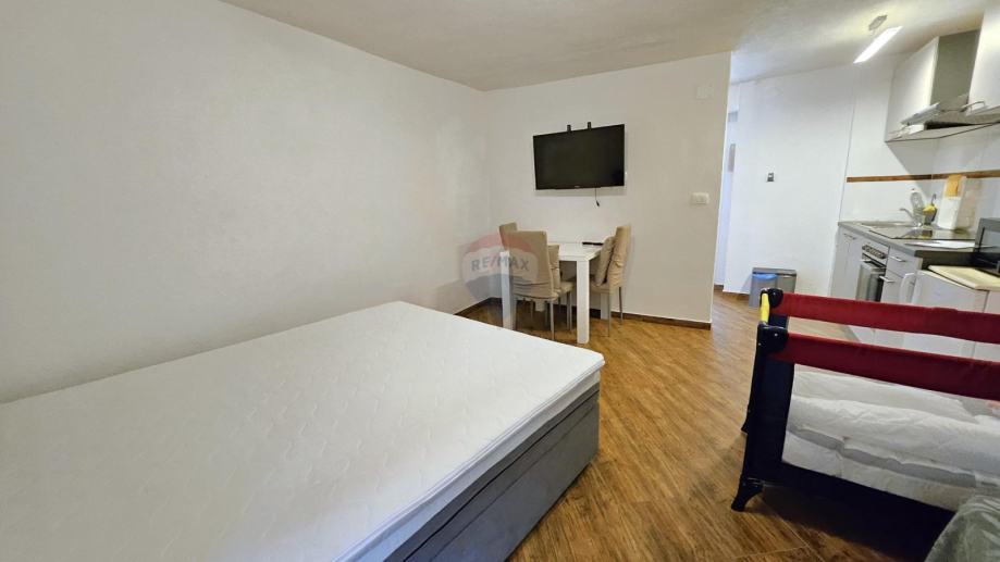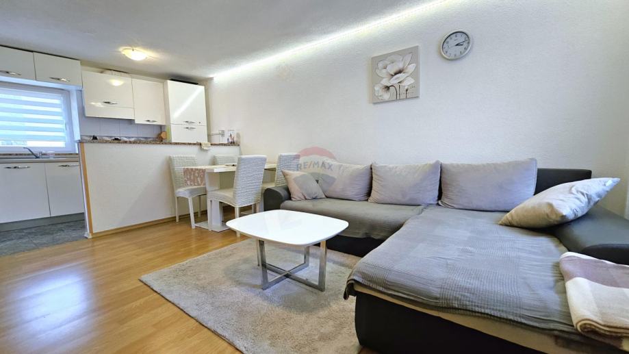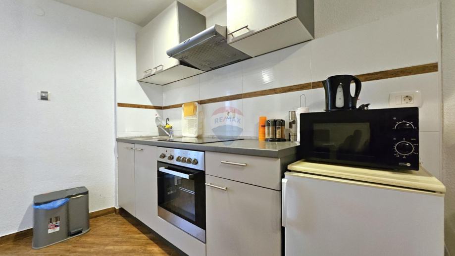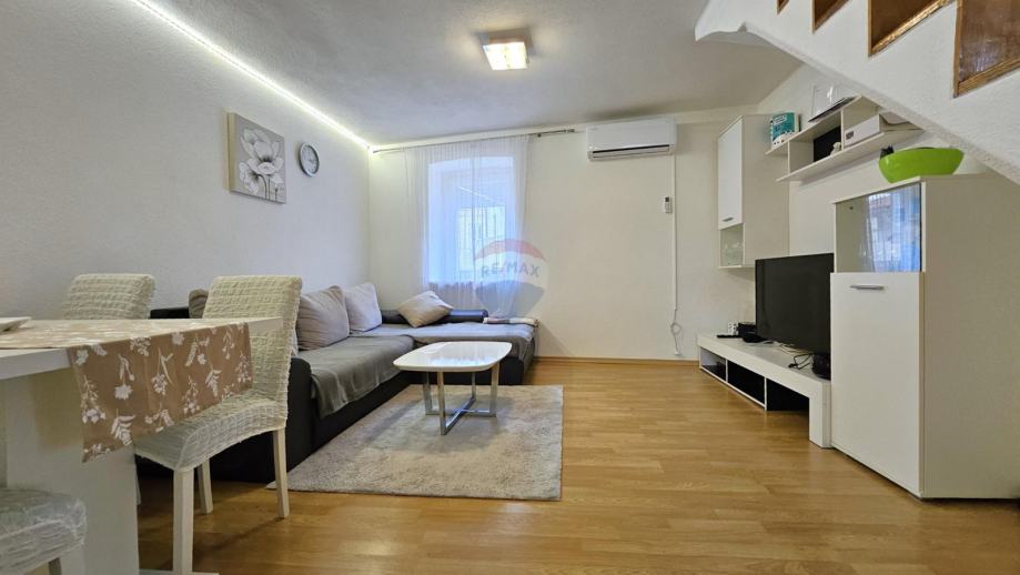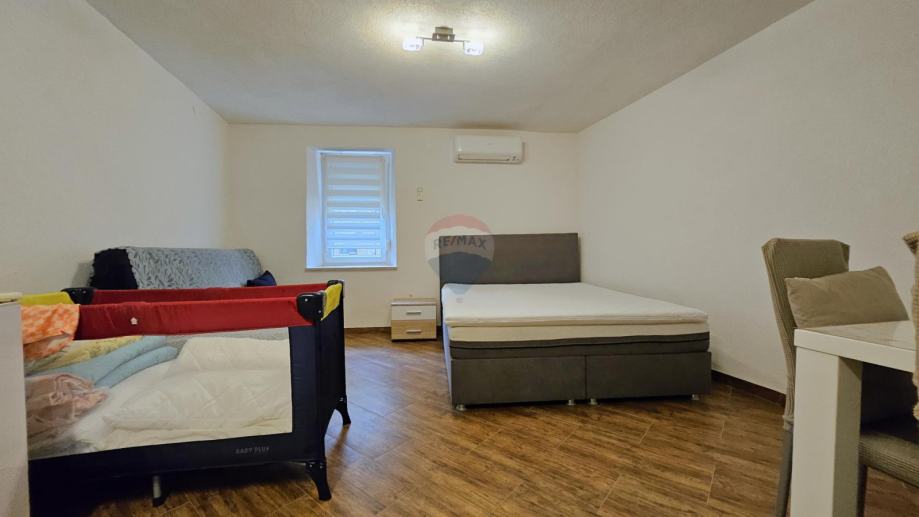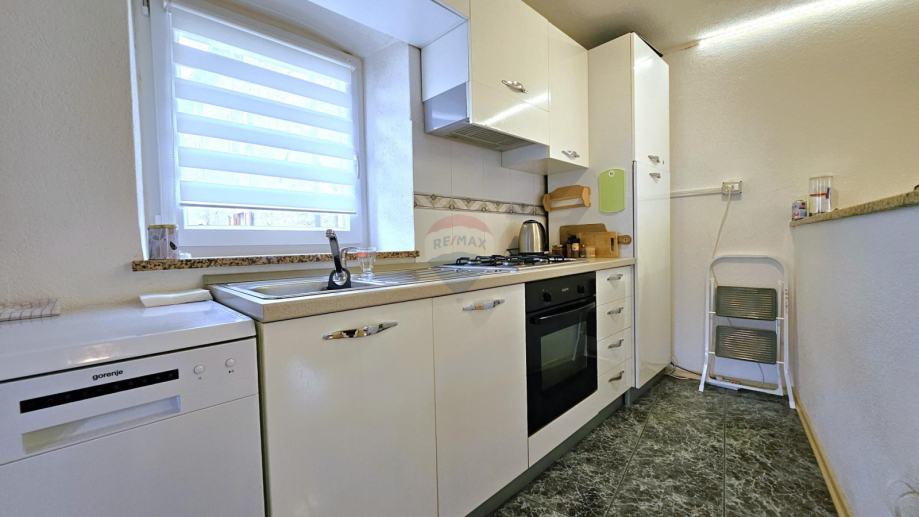 Površina kuće iznosi 63 m², raspoređena na tri etaže, s odvojenim stambenim jedinicama. U prizemlju se nalazi potpuno opremljen studio apartman površine 23 m2 koji se sastoji od dnevnog prostora s kuhinjom, blagovaonicom i kupaonicom, idealan za goste ili za iznajmljivanje. Apartman je kompletno adaptiran 2024 g., kategoriziran je i iznajmljuje se u turističke svrhe. Grijanje je riješeno pomoću podnog grijanja na struju, a hlađenje klima uređajem.