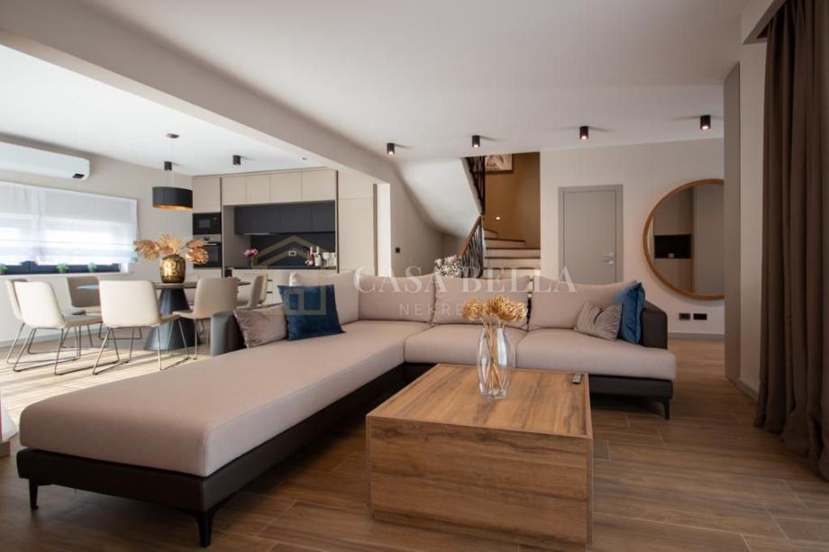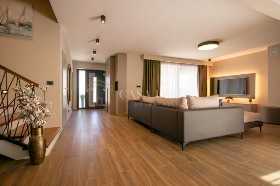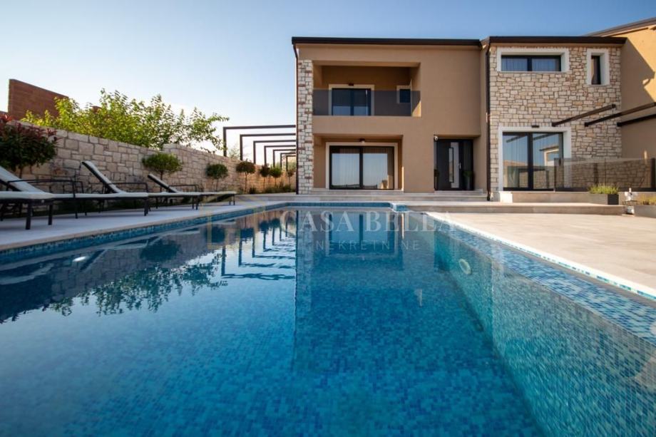 Vila se prostire na 178 m2, raspoređena na dvije etaže. Prizemlje se sastoji od prostranog ulaznog hodnika, moderno dizajnirane kuhinje i blagovaonice, udobnog dnevnog boravka, gostinjskog wc-a, jedne spavaće sobe, kupaonice, praktičnog spremišta te tri terase koje omogućuju uživanje na otvorenom. Na gornjem katu nalaze se tri prostrane spavaće sobe, dvije kupaonice te dvije terase s predivnim pogledom na okolni krajolik.