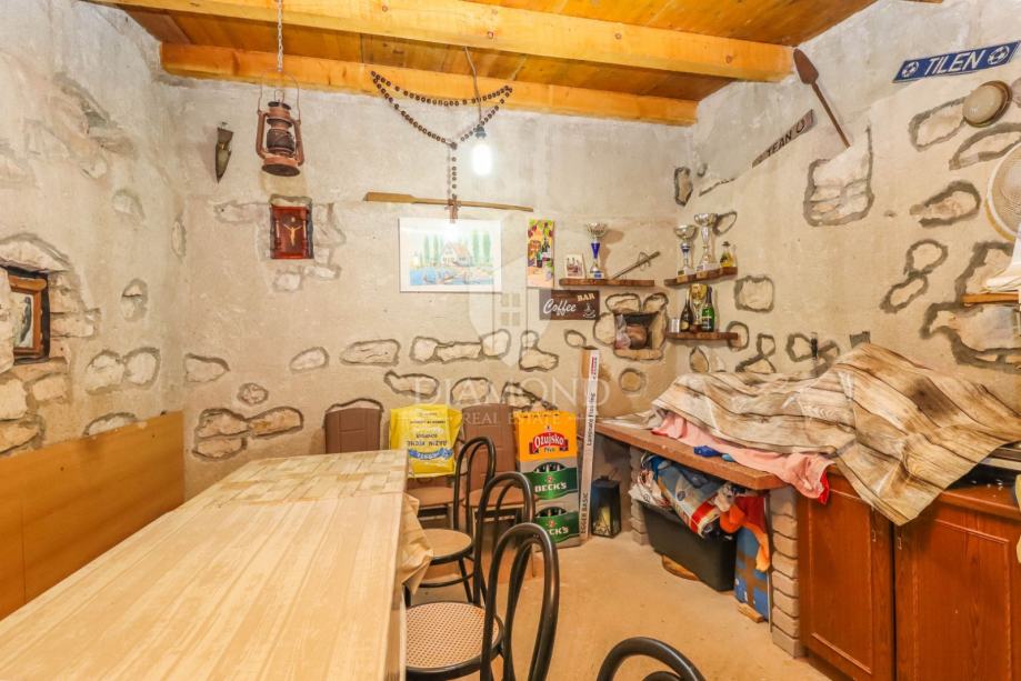 Površina starine iznosi 84m2 od čega 40m2 tlocrtno. Napravljen je novi drveni krov, tako da je kuća suha, te betonski pod. Struja i voda su u blizini. Privremeno je riješen priključak struje. Starina se privremeno koristi kao praktična konoba s natkrivenim dvorištem na kojem se smjestio zidani kamin. Postoji mogućnost izgradnje dodatnog kata što joj pruža mogućnost izgradnje konforne obiteljske kuće s vlastitim dvorištem ili parkingom.
