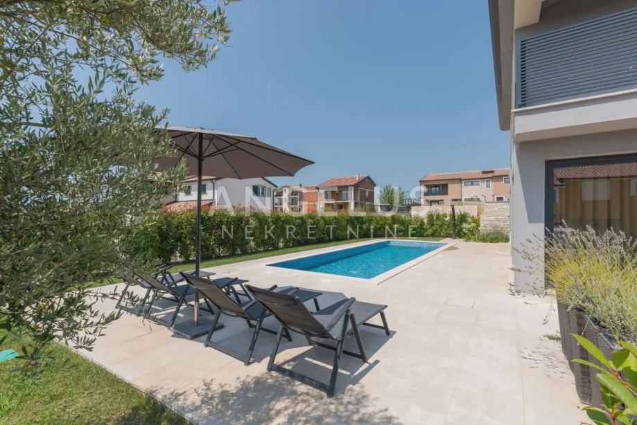 Ova moderna kuća s bazenom je idealna za miran cjelogodišnji življenje u blizini svih sadržaja koje trebate za život u urbanoj sredini.