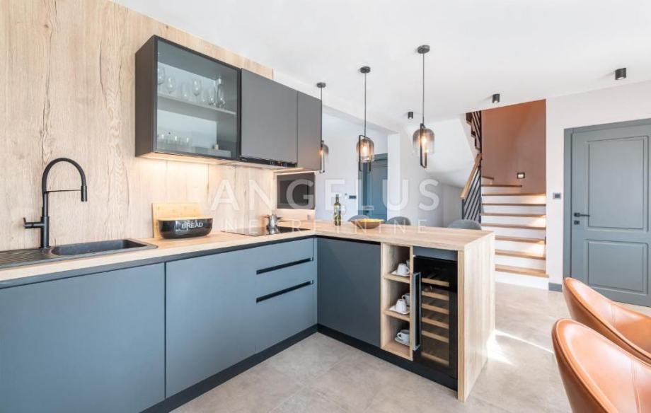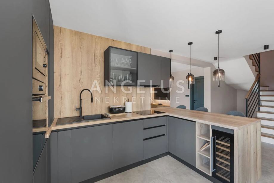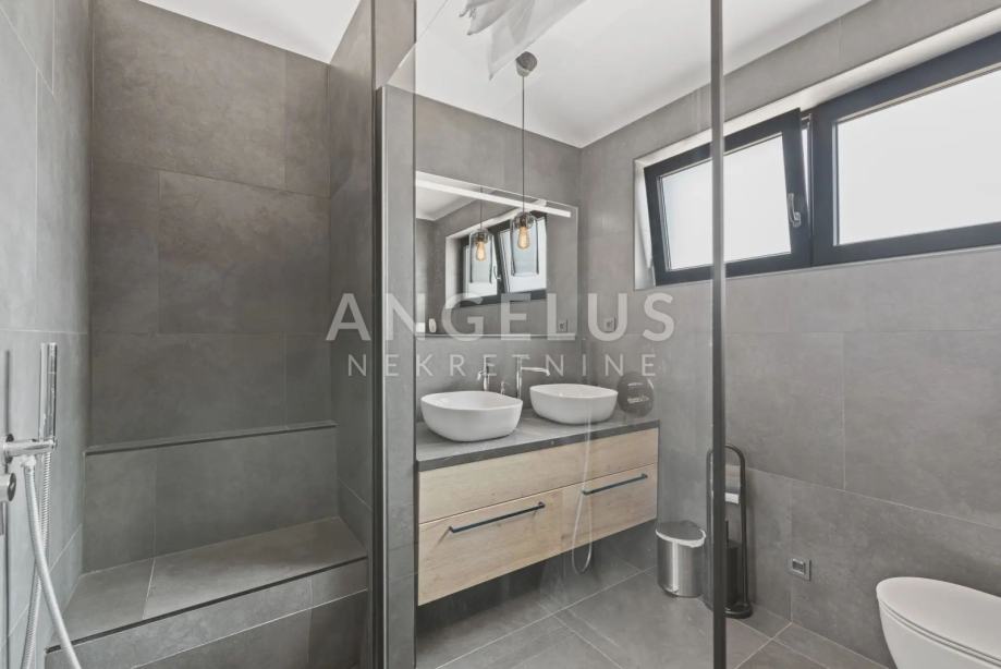 Površina ove moderne kuće je 143 m2, a stambeni prostor se proteže kroz prizemlje i kat. U prizemlju se nalazi prostrani dnevni boravak s kuhinjom i blagovaonicom u open-space konceptu, kupaonica, ostava i praonica. Unutarnjim stepenicama dolazi se do kata gdje se nalaze 3 spavaće sobe, 2 kupaonice i hodnik. Jedna od spavaćih soba ima vlastitu kupaonicu i natkrivenu terasu.
