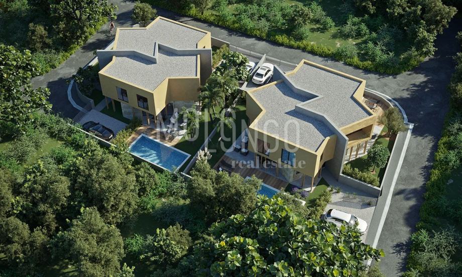 Ove dvije dvoetažne kuće nalaze se u blizini Brtonigle i nude četiri elitne stambene jedinice. Prilikom osmišljavanja ovih zgrada vodili smo se s tri smjernice – da budu prostrane, moderne i udobne. A te osobine svakako nadopunjuje i sam položaj jer je Brtonigla poznata po dobroj hrani, vrhunskim vinima i vrhunskim domaćim proizvodima. Užitak se nastavlja kada svoje vozilo parkirate na privatnom parkirnom mjestu ispred svog duplexa i zaronite u vlastiti bazen.
