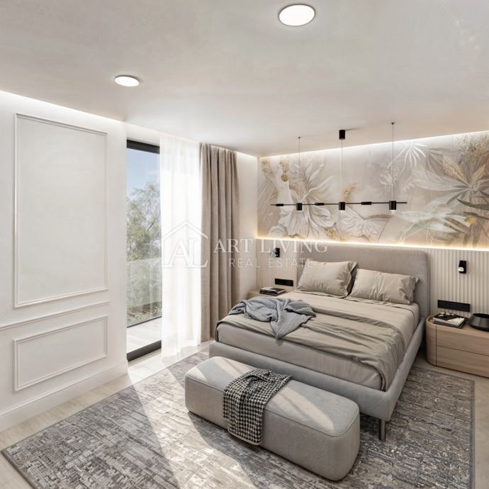 Stepenicama se dolazi do 1. kata gdje se nalaze 3 spavaće sobe, svaka sa vlastitom kupaonicom te prostrana natkrivena terasa.