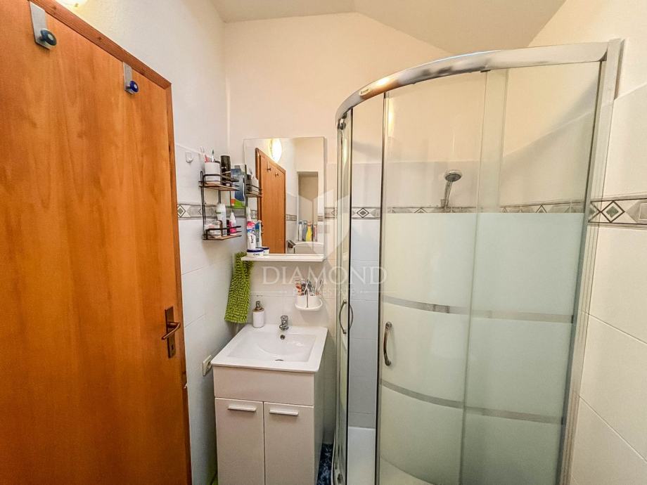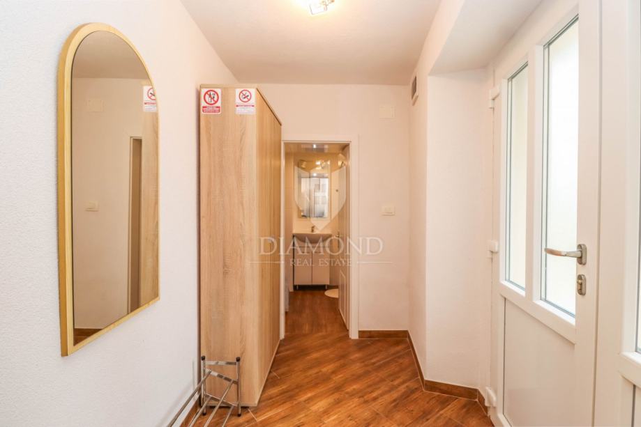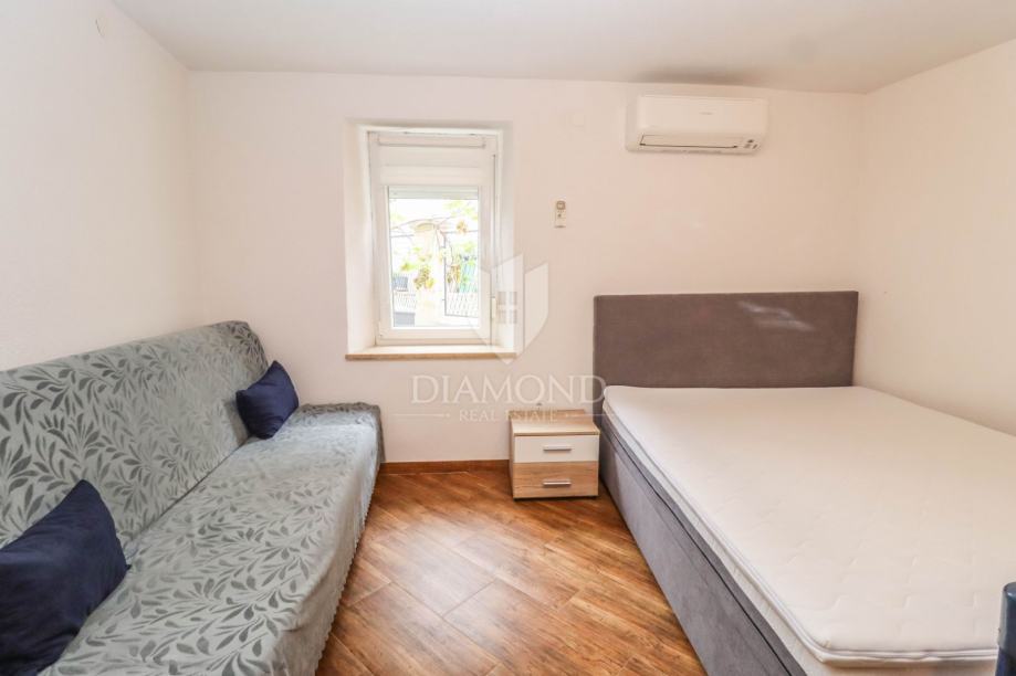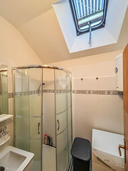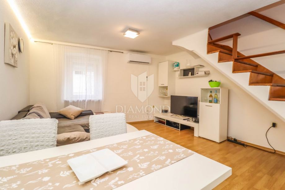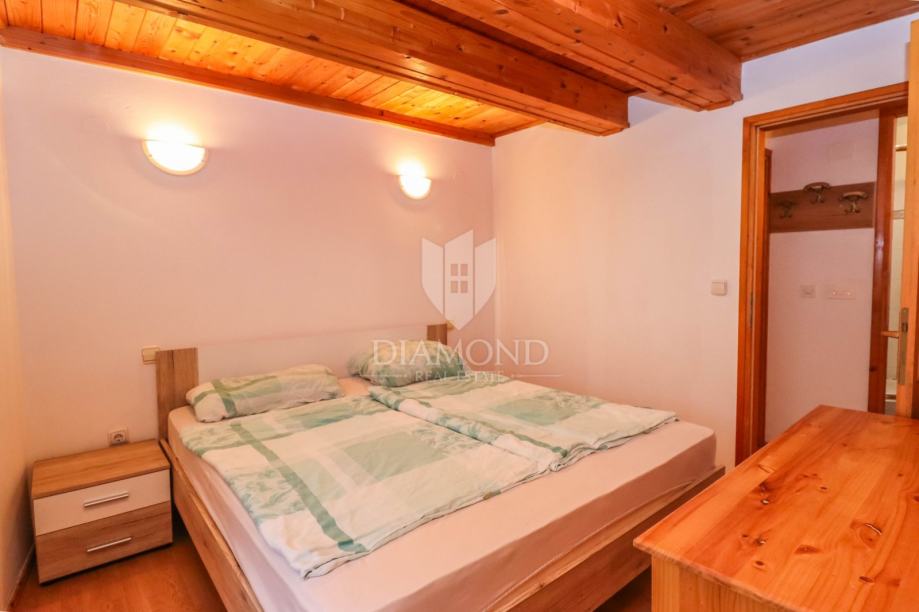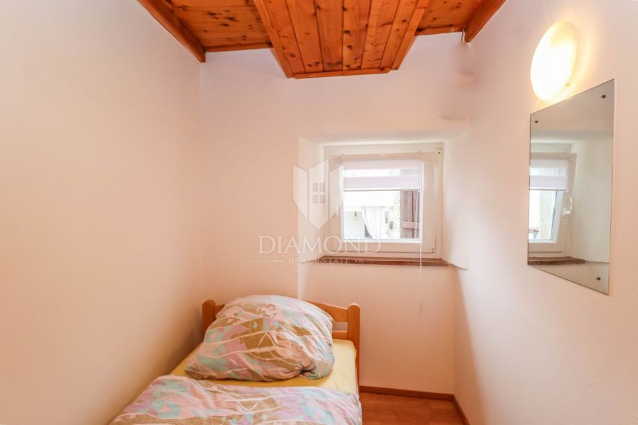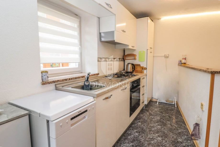 Kuća se prostire na ukupno 62m2 te se sastoji od dvije kompletno odvojene cijeline. U prizemlju se nalazi stan od 23m2 koji je kategoriziran te se turistički iznajmljuje kao studio apartman. Kompletno je adaptiran 2024. godine te se sastoji od kuhinje i blagovaonice, dnevnog boravka i kupatila. Napravljene su nove instalacije, provedeno je podno grijanje na struju, te hlađene putem inverter klima uređaja. Vanjskim stepeništem se dolazi do prekrasne loggie i ulaza u stan. Stan na prvom katu se proteže na 48m2 te se sastoji od kuhinje, blagovaonice, dnevnog boravka i 2 spavaće sobe i kupanice na katu. Grije se i hladi putem 2 zasebna klima uređaja.