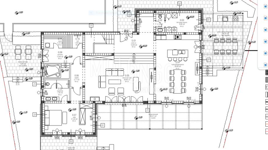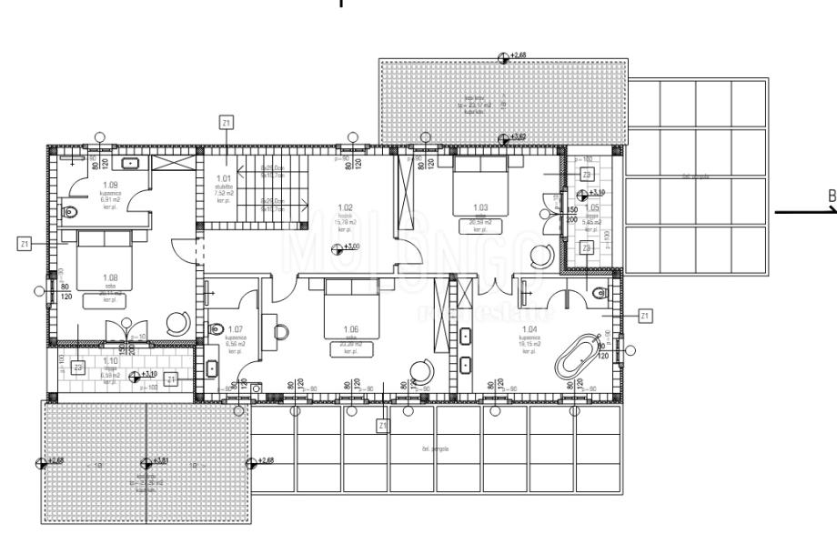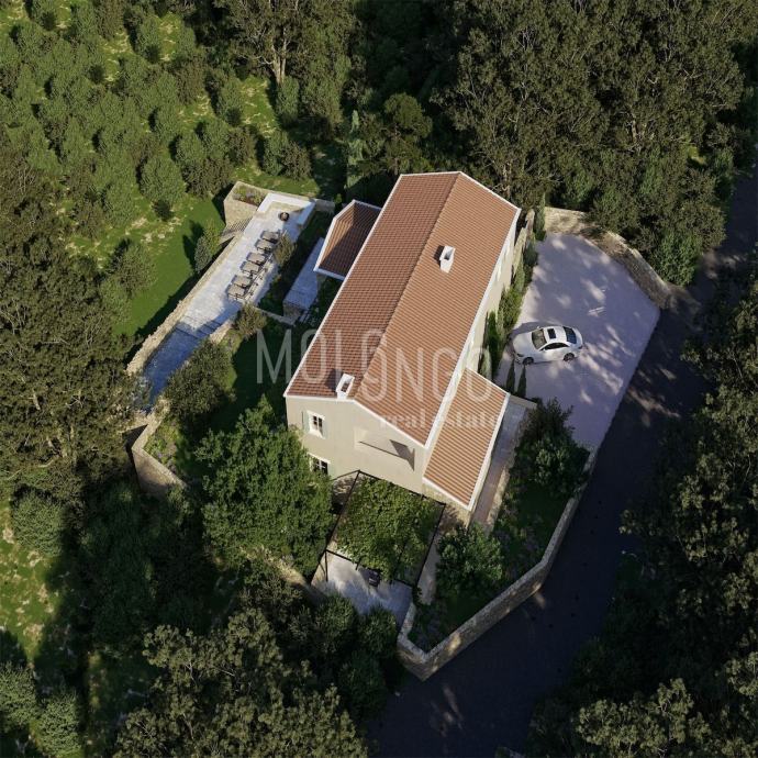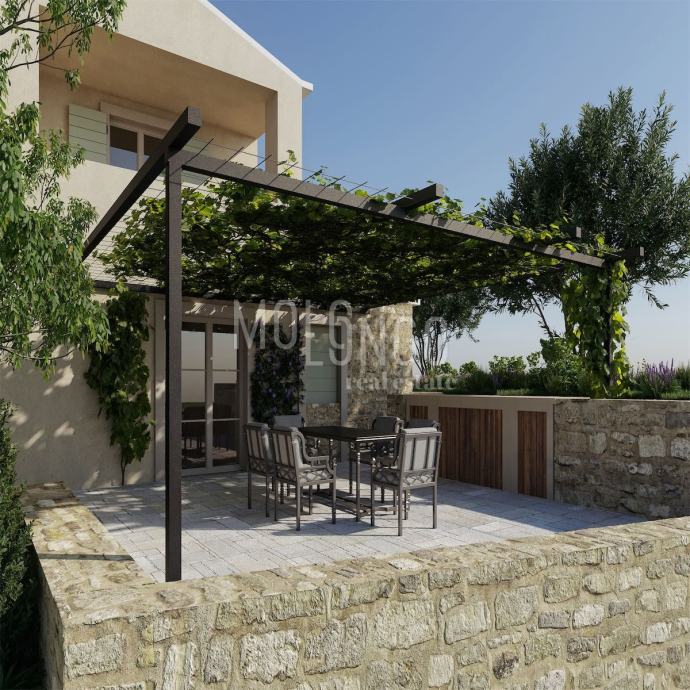 Veličina interijera prelazi 270 četvornih metara. S četiri spavaće sobe – svaka sa svojom kupaonicom, velikim otvorenim prostorom za kuhinju i blagovaonicu, vrlo prostranim dnevnim boravkom i dvije galerije na katu, najupečatljiviji kutak kuće je unutarnji wellness s vanjskim dnevnim boravkom. Ali pravi dragulji nalaze se vani - svima omiljena ljetna kuhinja, dvije terase, sunčalište i potpuno jedinstveni bazen. Bazen je izgrađen na temeljima ruševina stare kamene kuće što ga čini kao da je dio prirode, potpuno uronjen u okoliš.