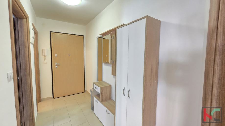 Stan se sastoji od dvije spavaće sobe i dnevnog boravka, s dodatnim prednostima kao što su lođa i balkon. Opremljen je kuhinjom s aparatima, perilicom rublja, TV-om i krevetom, što doprinosi njegovoj funkcionalnosti i udobnosti. Zagrijavanje prostora osigurava struja uz pomoć klima uređaja, što omogućava ugodan boravak tijekom cijele godine.