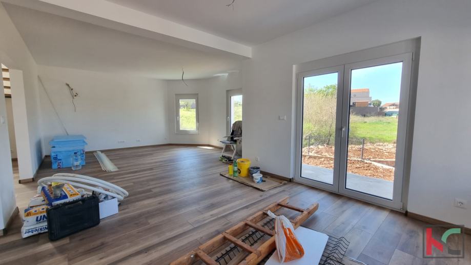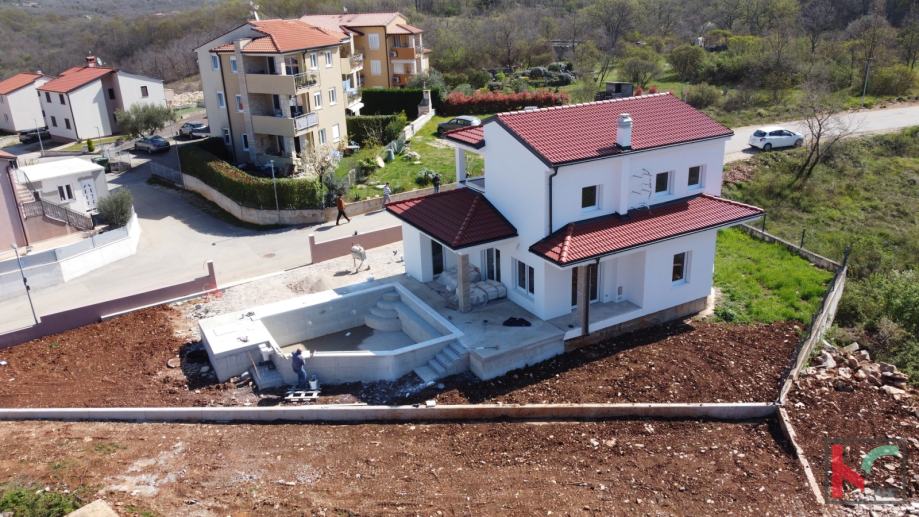 Kuća je opremljena podnim grijanjem na obje etaže, pružajući ugodnu atmosferu tijekom cijele godine. Izvana obložena izolacijom i neutralnom bojom, s PVC stolarijom.
