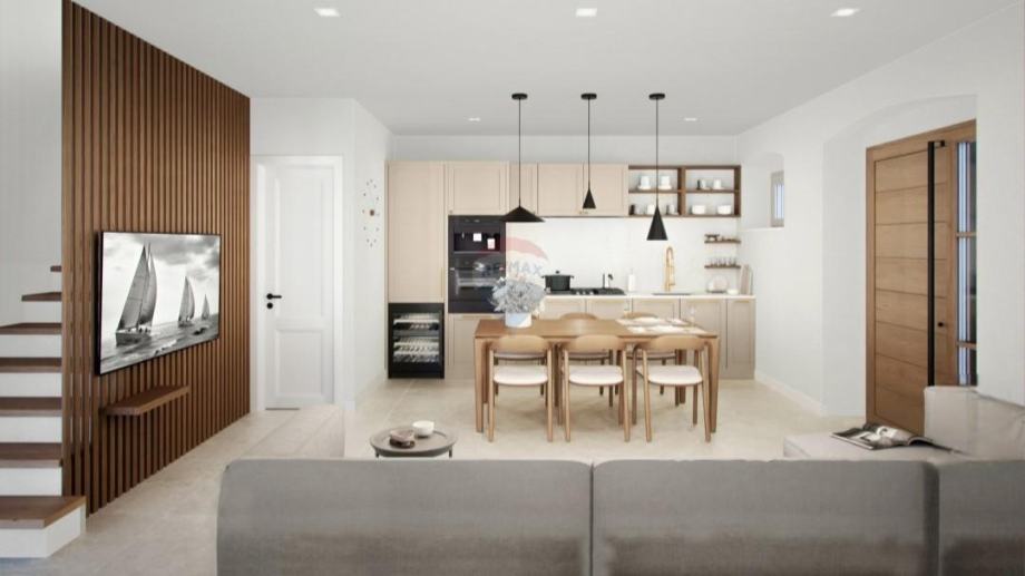 Nekretnina zahtijeva potpunu renovaciju, ali se prodaje s već odobrenim projektom adaptacije i idejnim rješenjem, čime su kupcima uvelike olakšani administrativni i tehnički koraci. Projekt predviđa prostrani dnevni boravak, kuhinju s blagovaonicom i kupaonicu s tušem u prizemlju. Na katu se nalaze dvije spavaće sobe i još jedna kupaonica, dok potkrovlje nudi dodatne dvije sobe. Ispred kuće nalazi se terasa idealna za opuštanje i uživanje u prirodnom okruženju.