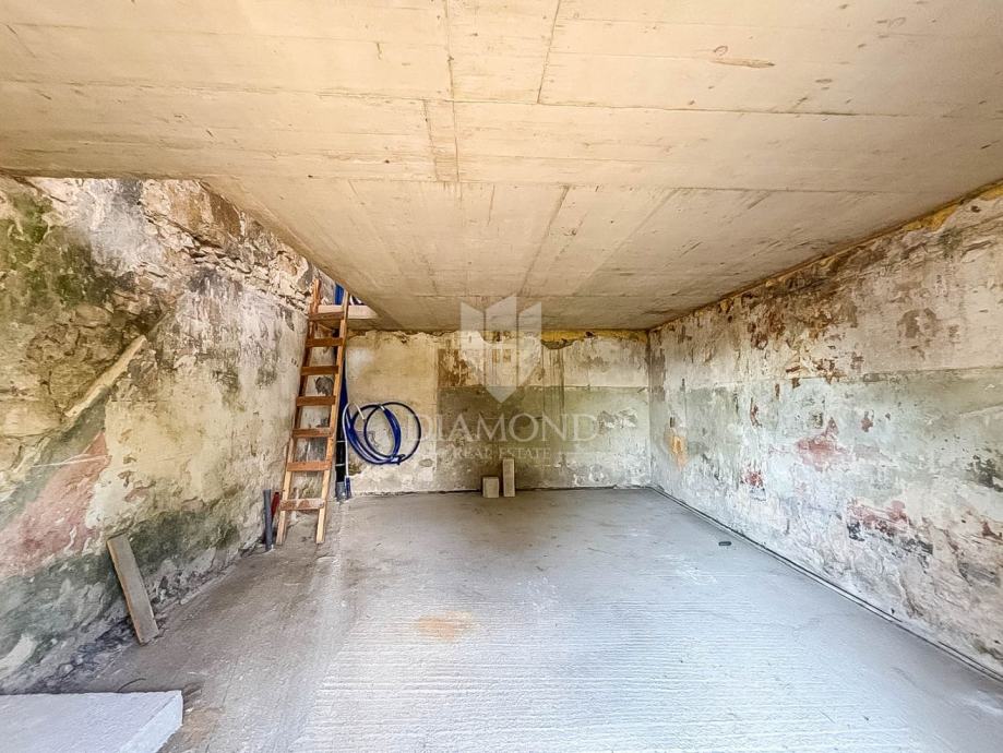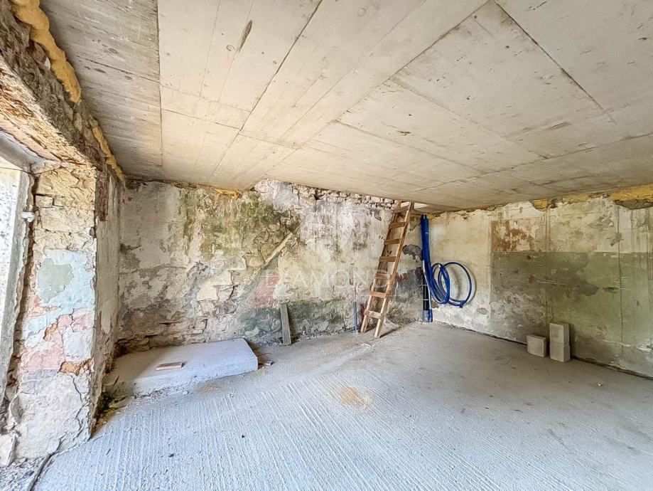 Radi se o kući u nizu tlocrtne brutto površine 35 m2. Kuća je u tijeku rekonstrukcije te se prodaje u postojećem stanju. U prizemlju se prema projektu predviđa kuhinja s blagovaonicom i dnevni boravak s izazom u dvorište. Unutarnjim stepenicama se dolazi na kat gdje je smještena prva spavaća soba sa kupanicom te drugi kat gdje je smještena druga spavaća soba sa kupanicom s pogledom na more. Postojeći zidovi će zadržatu originalan kamen što će novoj modernoj kući dati poseban šarm svojega vremena. Sa kuće se pruža pogled na more i na lijepi istarski krajolik.