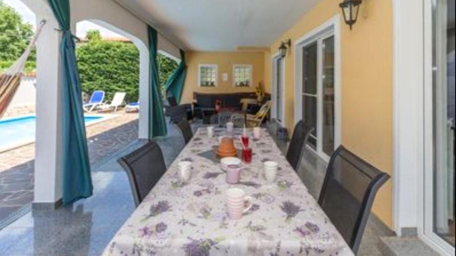 Nekretnina se prodaje potpuno namještena, pružajući novim vlasnicima mogućnost trenutnog useljenja i uživanja. Na lijepo uređenoj okućnici nalazi se prostrani bazen, sunčalište, ljetna kuhinja te veliki stol za druženje, idealni za opuštanje i zabavu na otvorenom.