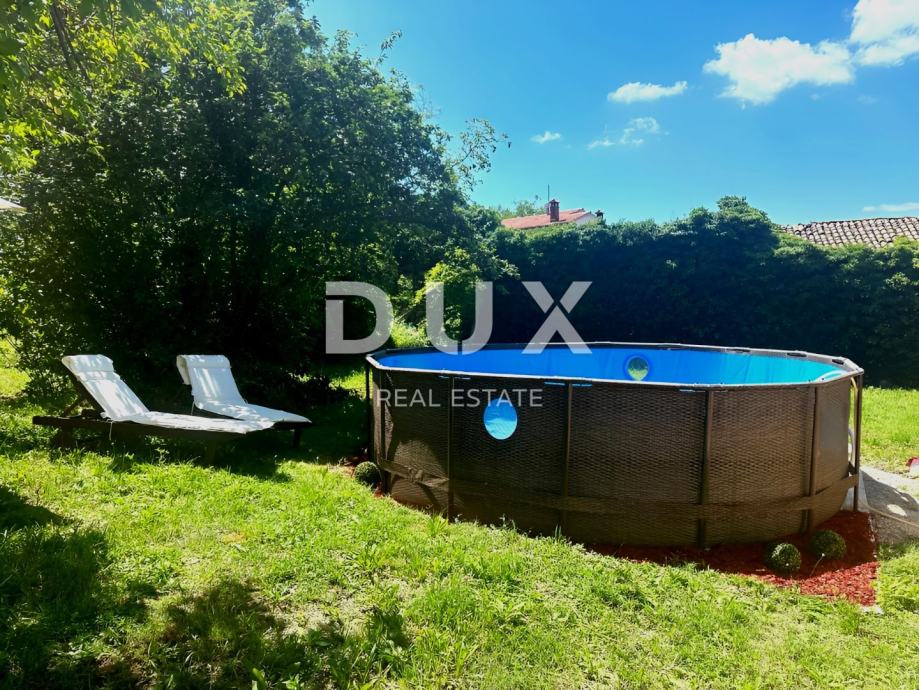 Okućnica je uređena i oplemenjena voćkama i biljem a savršen sklad zaokružuje nadzemni bazen i vanjska blagovaonica natkrivena pergolom.