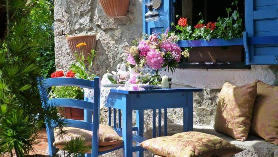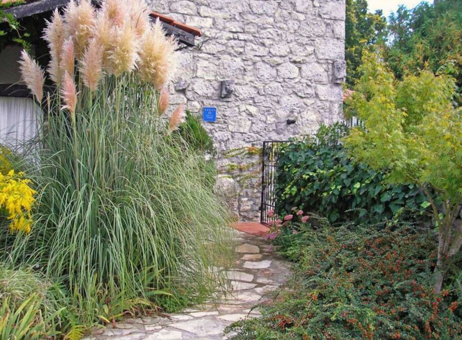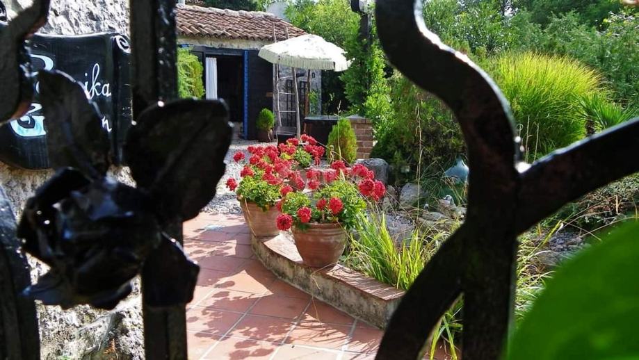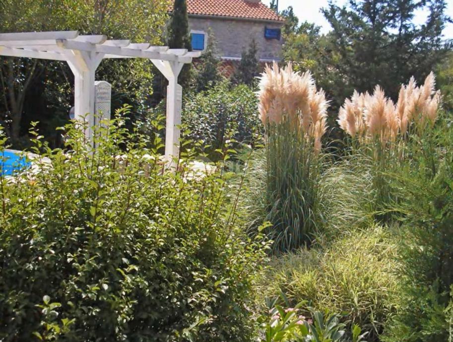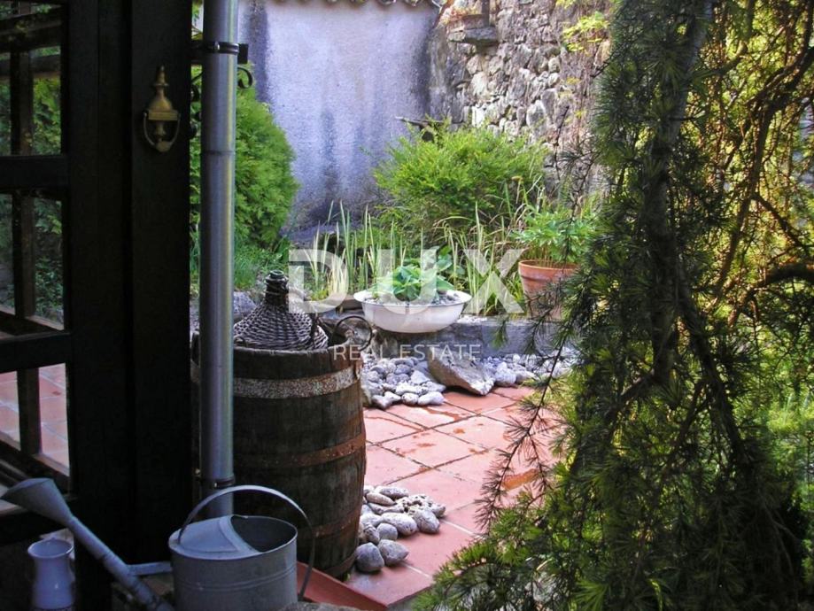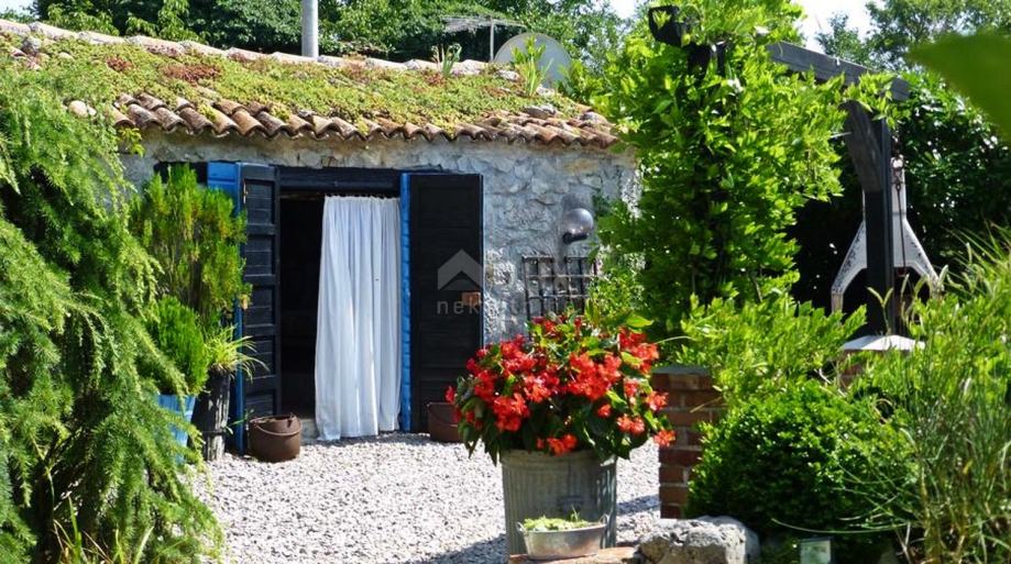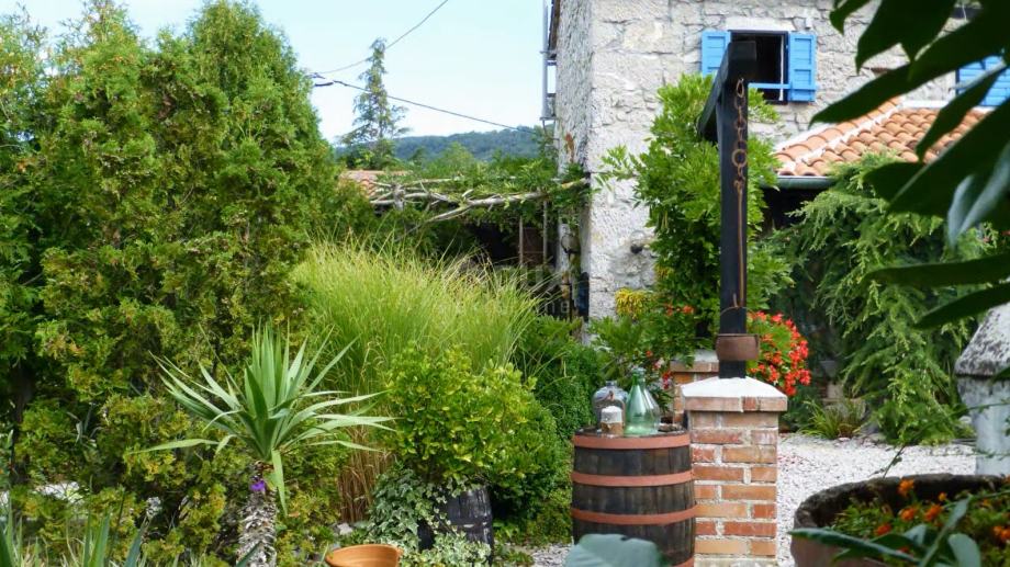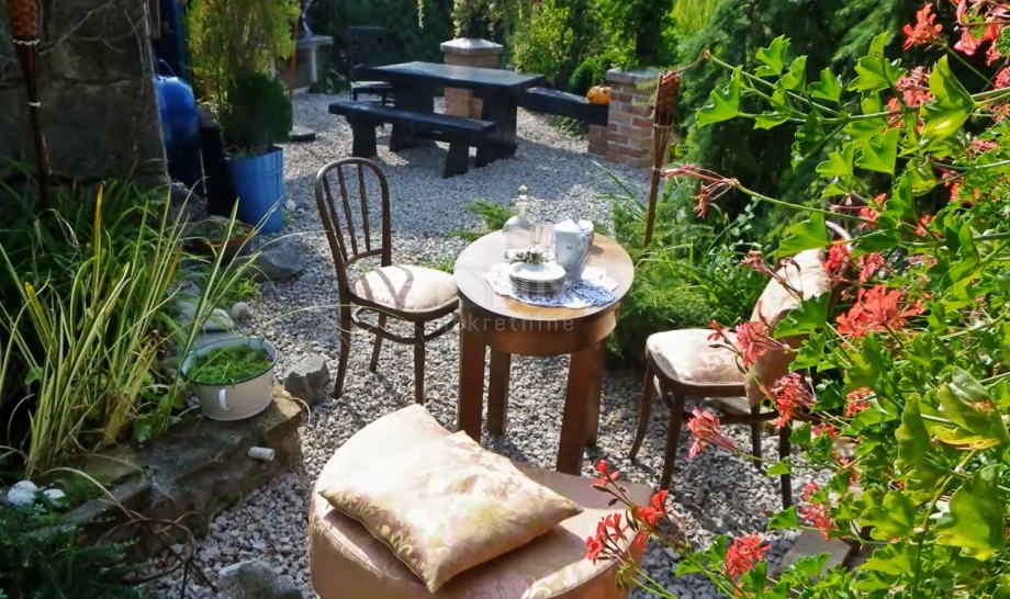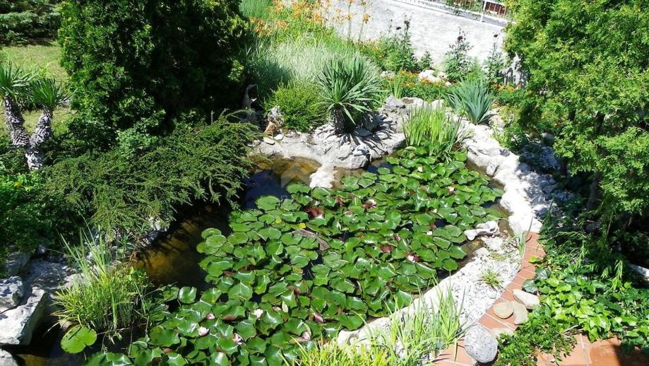 Okućnica se proteže na 1177 četvornih metara, a poseban je pomno uređeni vrt, zasađen brojnim mediteranskim biljem. Dominira perunika a u bujnu vegetaciju skladno se uklapa i prirodni bazen u kamenu, pretvoren u ribnjak prekriven lopočima.