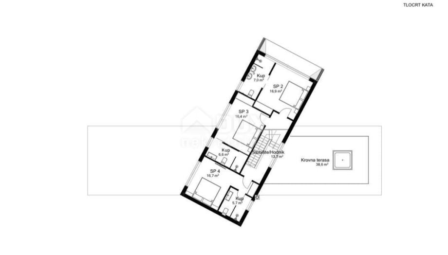 Na drugom katu smještene su tri spavaće sobe sa pripadajućim kupaonama te krovna terasa sa pogledom, veličine 39m2.