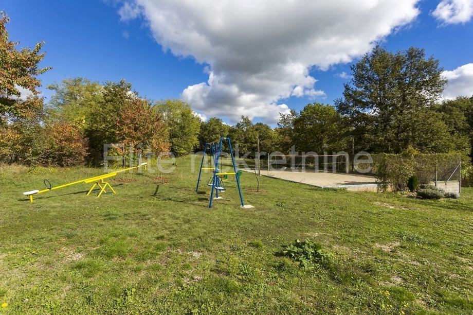 U mirnom okruženju, na svega 2 km od pitoresknog gradića Žminj, prodaje se jedinstven kompleks obiteljskog imanja koji se sastoji od dvije kompletno uređene obiteljske kuće s bazenima i dodatne poslovno-stambene zgrade. Imanje se nalazi na kraju naselja, okruženo šumom i zelenilom, što pruža potpunu privatnost i mir.