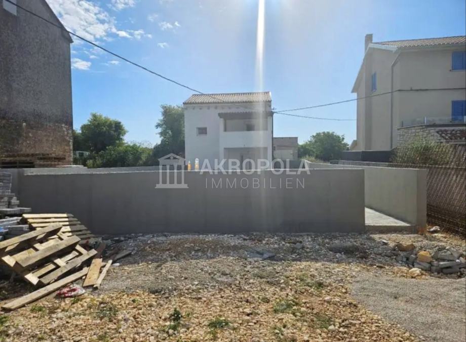 Zemljište od 412 m2, podijeljeno na kuću (tlocrtno 44m2), parkiralište i dvorište s bazenom dimenzija 7 x 3 m.