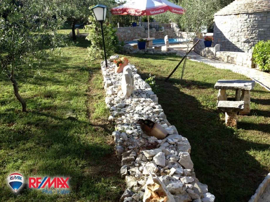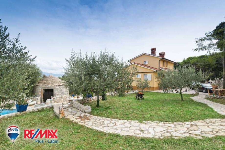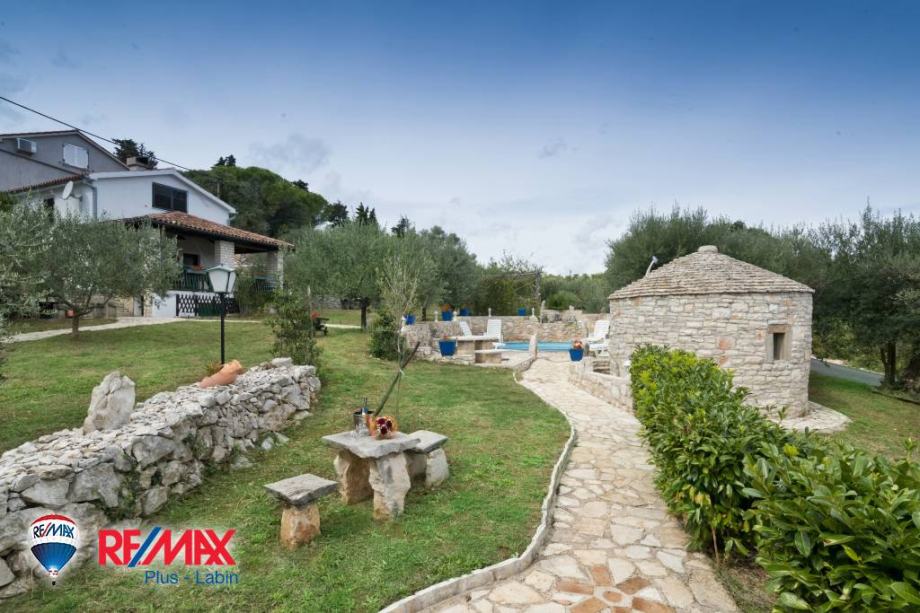 Uz kuće je okućnica na kojoj je među stoljetnim maslinama sagrađen bazen i istarski kažun u kojem se skriva sauna.