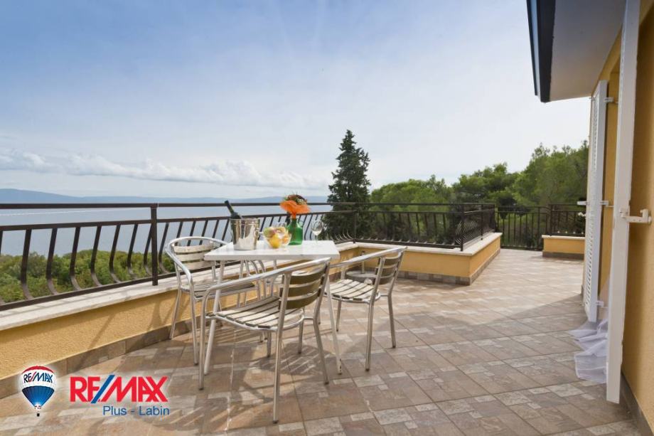 Iz ovog apartmana je izlaz na fantastičnu terasu od koje se pruža pogled na cijeli Kvarner.
