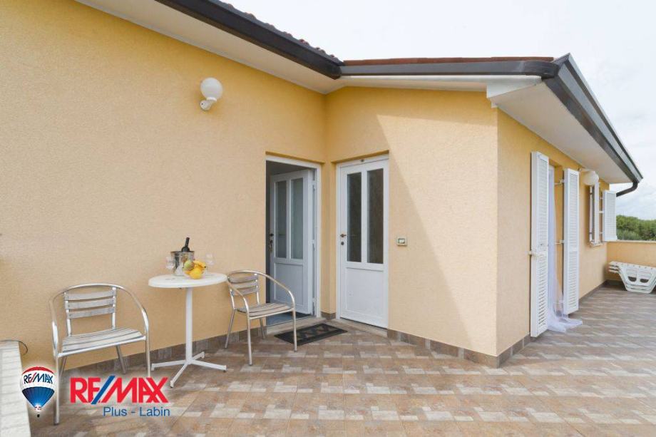 Iz ovog apartmana je izlaz na fantastičnu terasu od koje se pruža pogled na cijeli Kvarner.