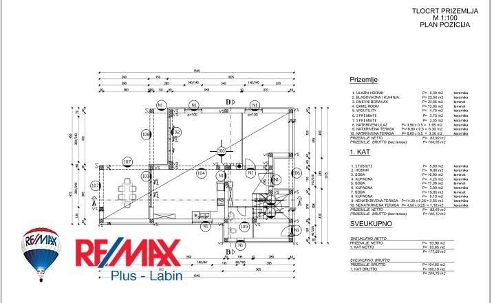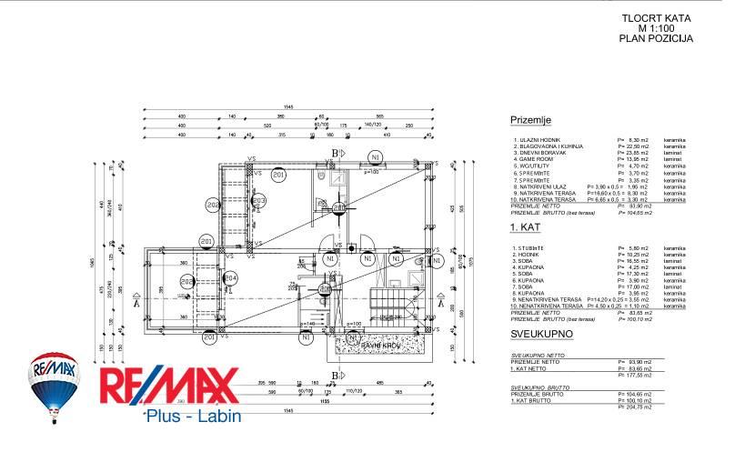 Na prizemlju će biti smještene kuhinja sa blagovaonom, dnevni boravak, toalet te "game room".