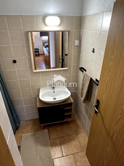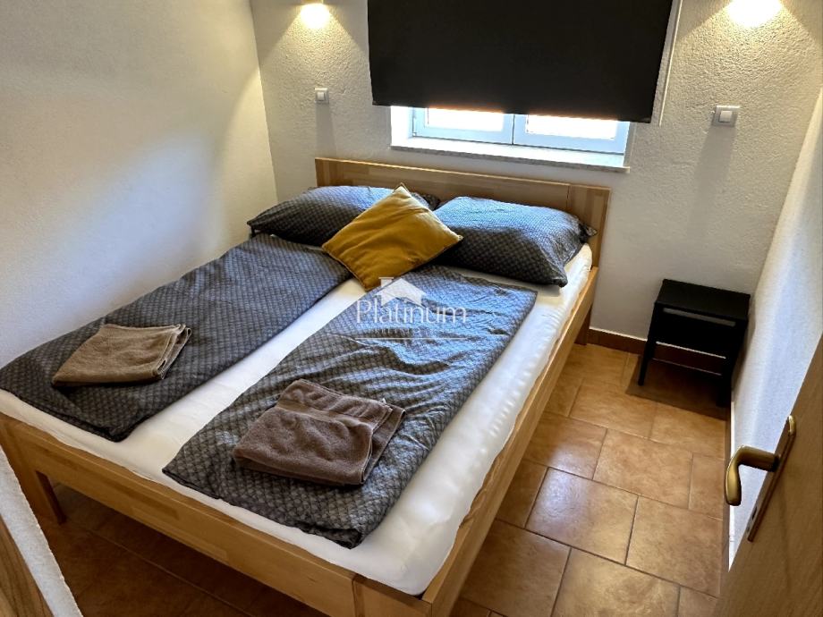 Apartman se sastoji od spavaće sobe,dnevnog boravka s kuhinjom i blagovaonom,kupaonicom,natkrivanje terase,garaže u prizemlju,parkirnim mjestom i otečene terase u prizemlju.