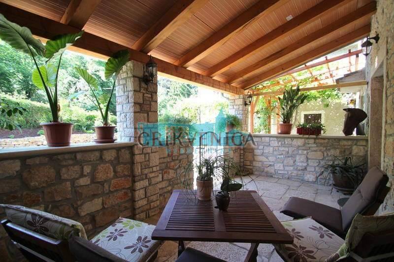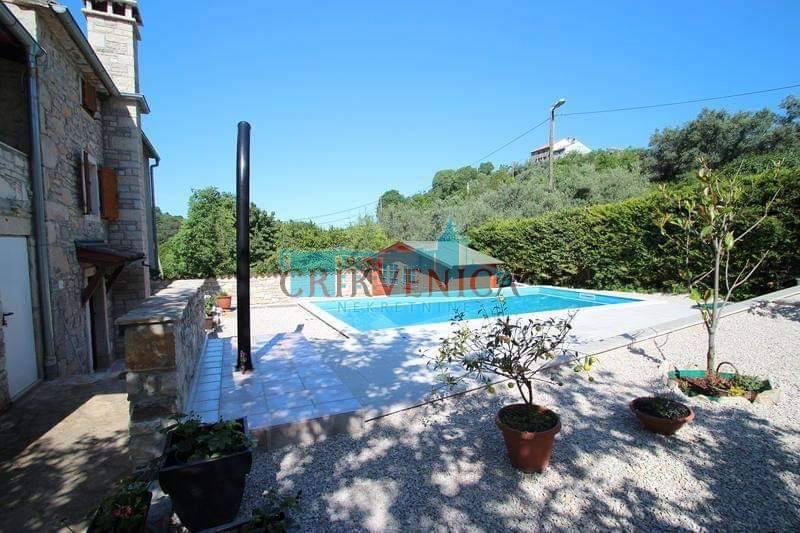 Okućnica je prelijepo uređena zelenilom, vrtnom kućicom za odlaganje stvari, a osvježenje za vrijeme ljetnih mjeseci možete pronaći u bazenu površine 24m2.