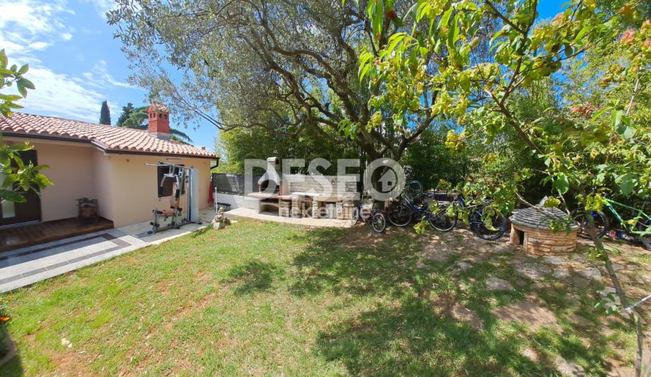 U dorištu se nalazi lijepi 32 m2 veliki bazen , dok na lijepo uređenoj okućnici ima mjesta za parking automobila.