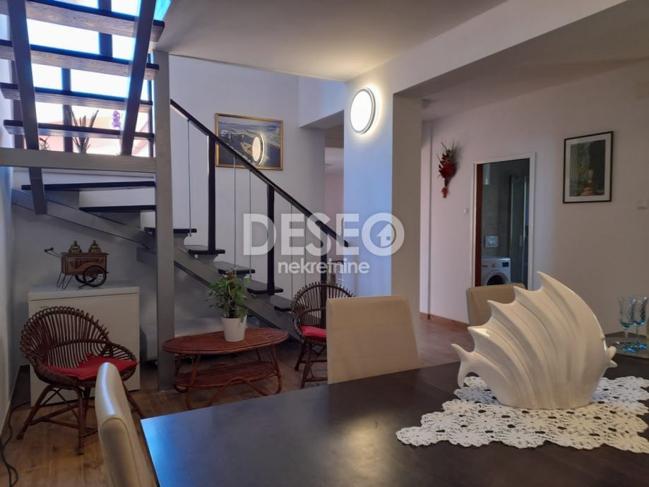 Sastoji se od prizemlja i kata, dok u prizemlju ordinira kuhinja blagovaonom ,kupatilo i veliki dnevni boravak s izlaskom u dvorište na katu su 4 spavaće sobe i dva kupatila, s balkona se pruža pogled na more.