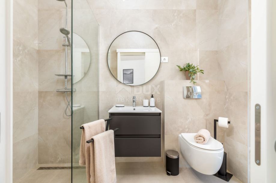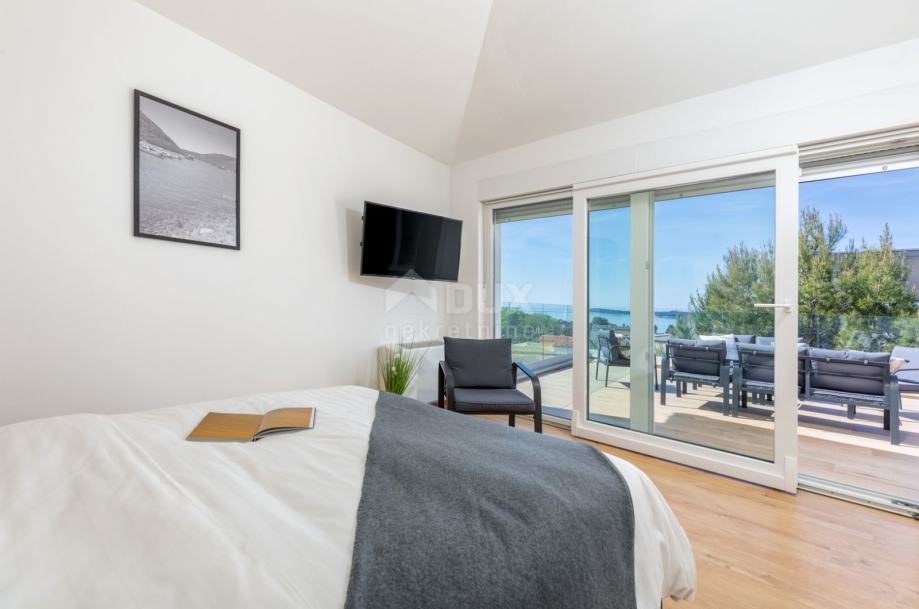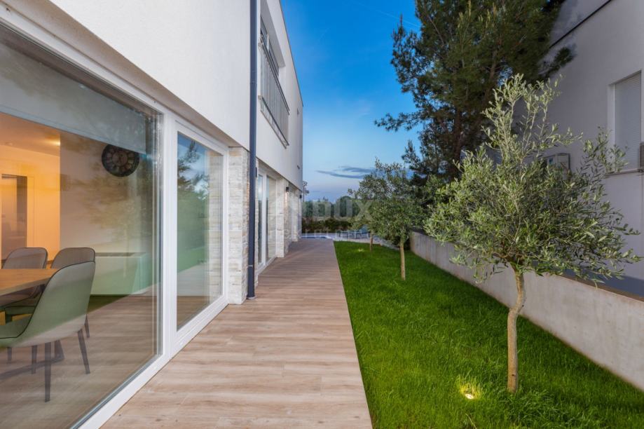 U prizemlju kuće nalazi se spremište, jedna spavaća soba sa vlastitom kupaonicom, hodnik, kotlovnica, kuhinja sa blagovaonicom i dnevnim boravkom. u centralnom dijelu boravka svoje mjesto našao je i kamin koji služi kao dodatno grijanje tijekom zimskih mjeseci. Na prvom katu nalaze se tri prostrane spavaće sobe svaka sa svojom vlastitom kupaonicom, dok se na drugoj etaži nalazi jedna spavaća soba sa pogledom na more, također sa kupaonicom, manji fitnes, sauna, te prostrana terasa (40m2) sa pogledom na more i Brijunski arhipelag.