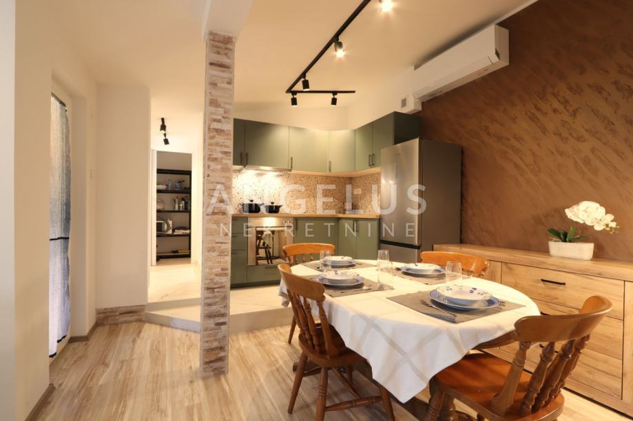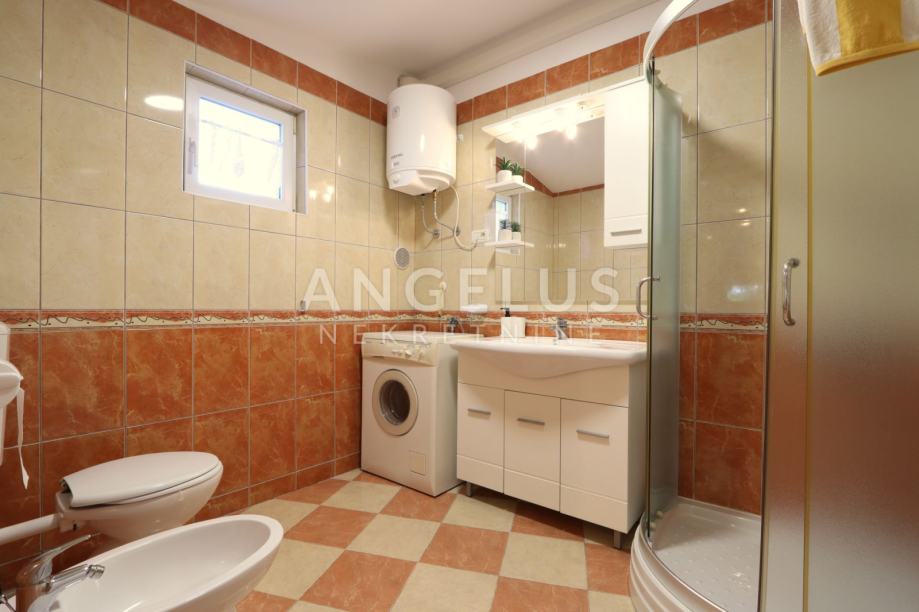 The centerpiece of this property is a landscaped 250 m² yard, which is carefully maintained by the owner. So, you don't have to worry about grass or flowers - just enjoy it. There are also two garden sheds in the garden, perfect for storing bicycles, scooters or other equipment. There is also a wooden canopy with a fireplace in the garden where you can spend evenings with the sound of crickets and the smell of the sea. One parking space is provided in the yard.